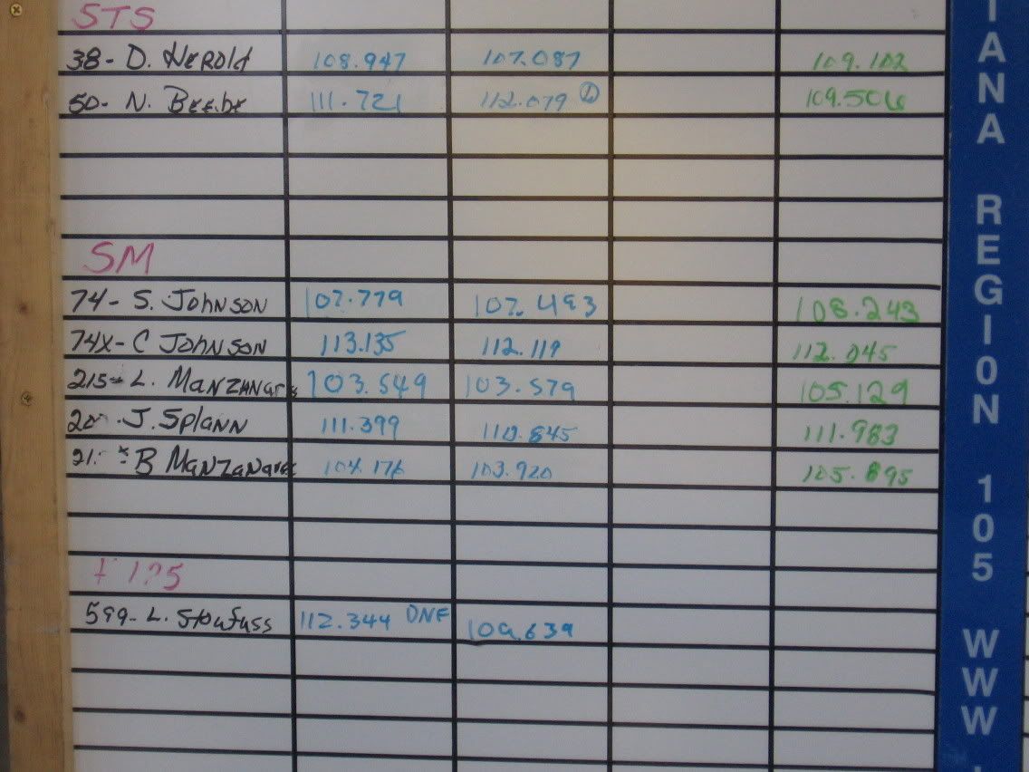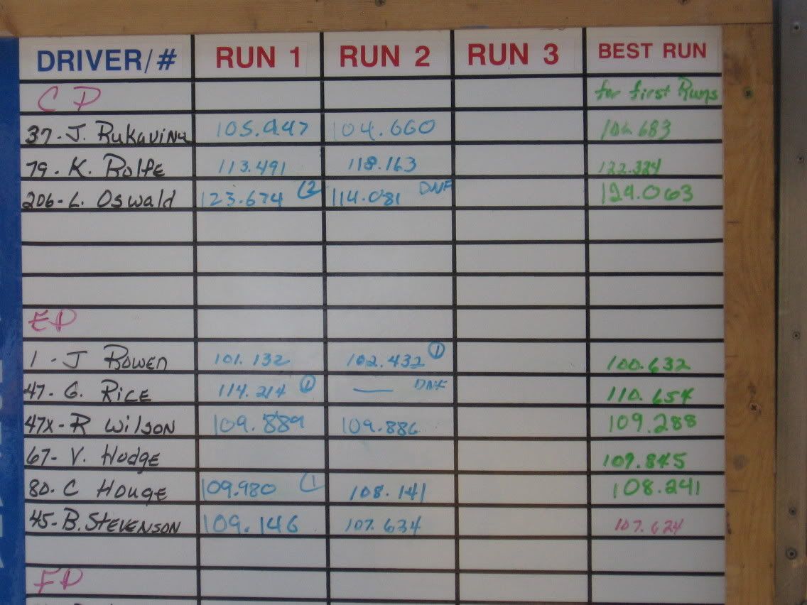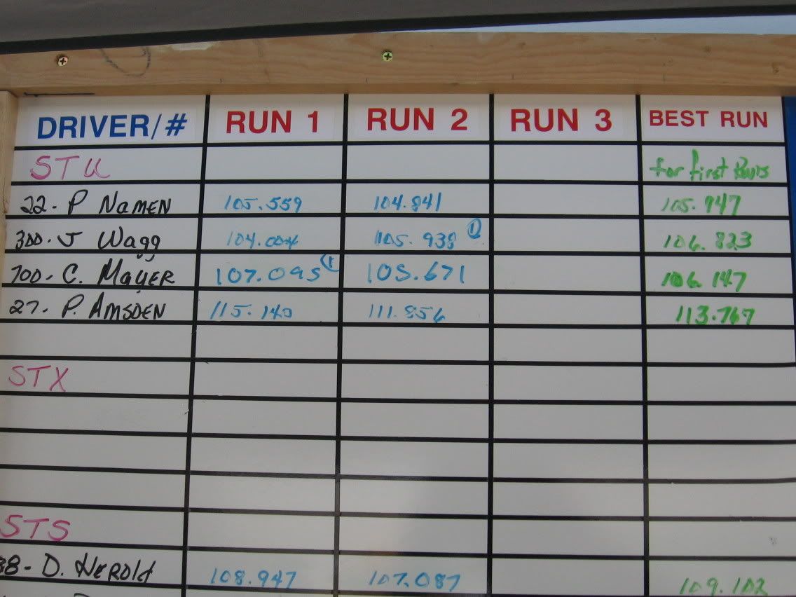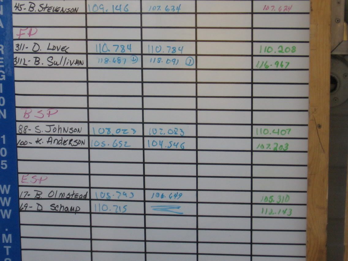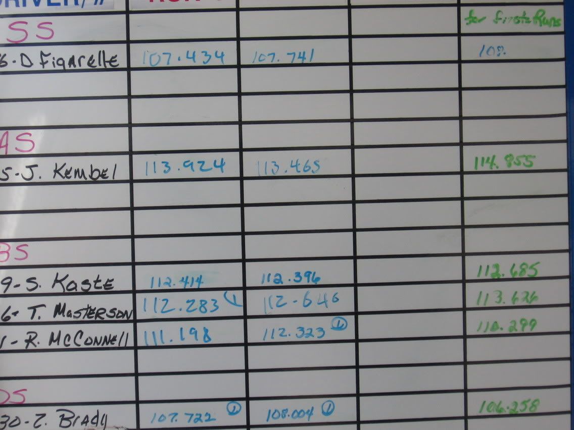 Here are some pics of the time board just to show you the average times of some of the other cars did. The ZO6 was #86, the porsche was #35, the CRX was #1, the prelude was #215, The Camaro was #22, the STI was #700, The GT was #27..... This one shows my time of 1:04.004...