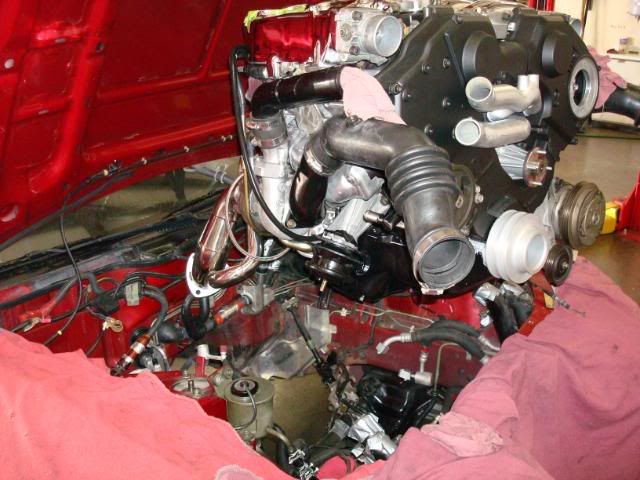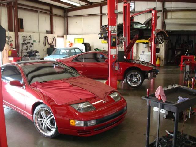 I'll post pics of the finnished project soon, can't wait much longer. This pic is a tipical site at Walkers import auto repair, now hosting 3 Twin Turbos. The black one in the back getting an alternater job dynoed at 657rwhp. Chattanooga's starting to represent, be lookin for us.