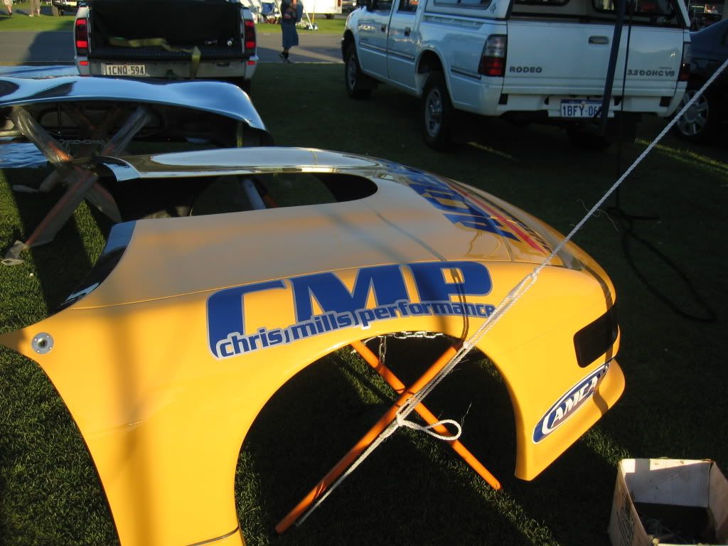 I was in Perth Australia Feb 2007 and managed to make it to the drags one evening. These were the only shots I got of this car. As you can see its a tube frame car and had a big block Holden V8. I wasn't able to talk to the owner, saw him make one pass. If I remember right it was low 8's around 160mph