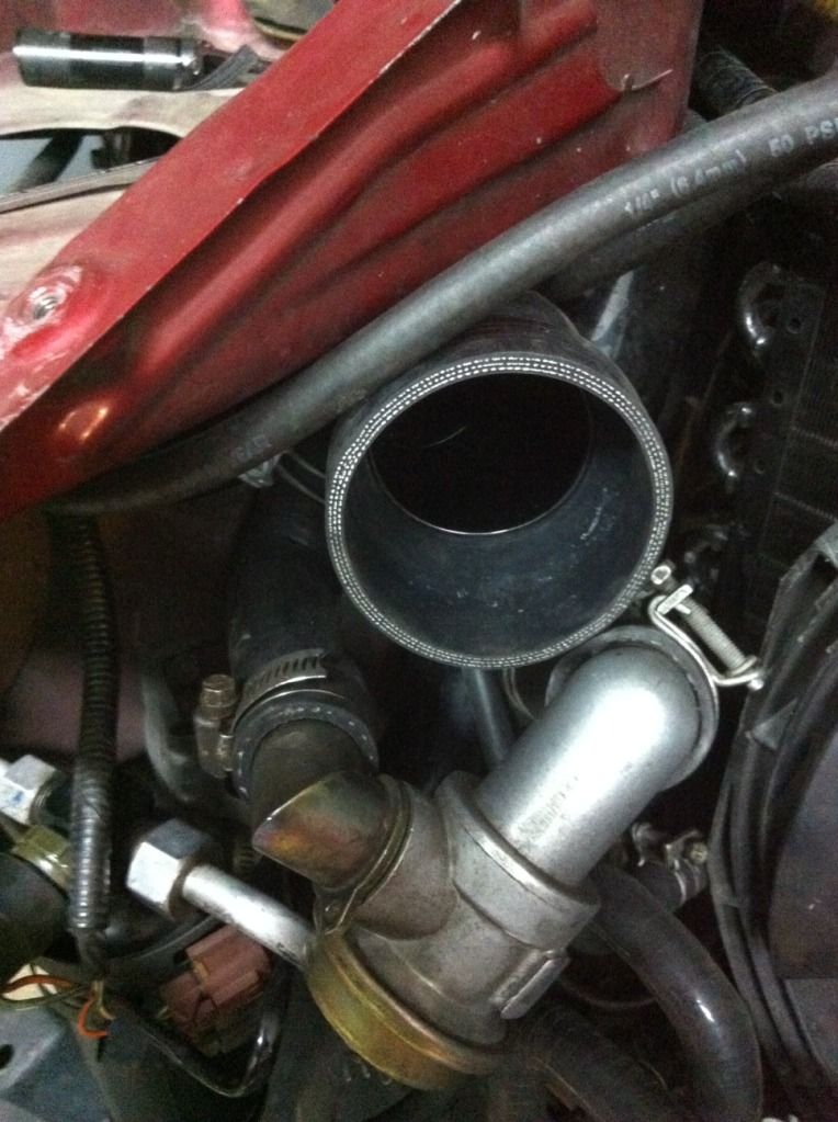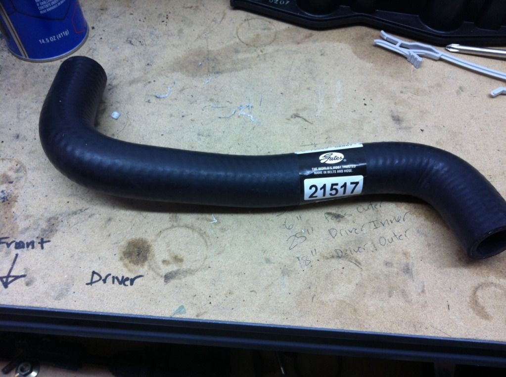 | I had previously posted pictures of how my recircs were mounted on ashpec ic pipes/stock inlet pipes using all oem hoses. The recircs had to be clocked but it was no big deal. Today I finally installed my ashspec turbo inlet pipes and could not find a way to mount the recircs using oem hoses. I went to O'Reilly's to pick up the gates 25253 hose that was recomended on this forum for the plumbing of the recircs. I didn't like the the flexibility of the hose...didn't seem capable of the tight bend I wanted. So I took a look through their hoses in the back and found what I think works well. Gates 21517(about $16):