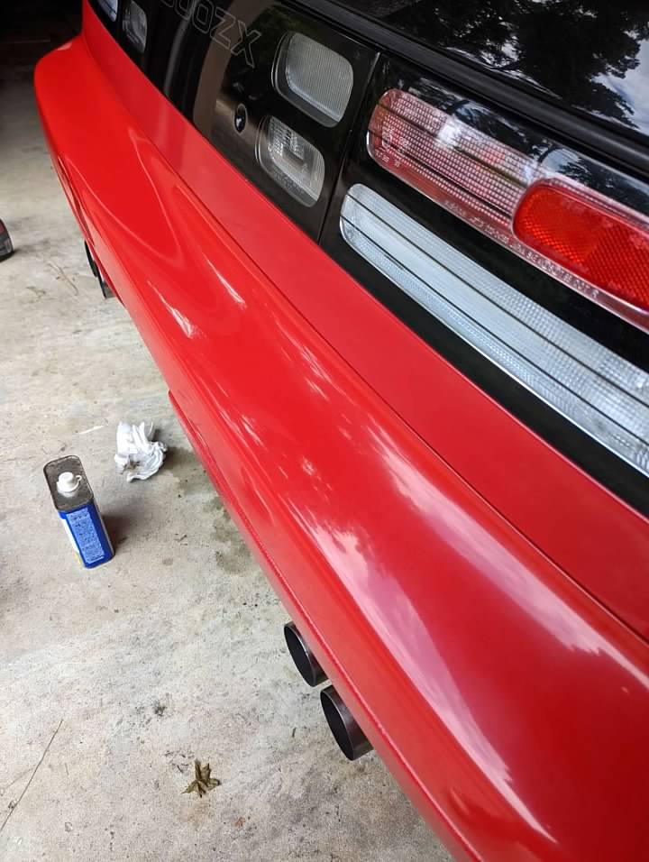 I was getting good results with the Number 1 which is the least abrasive, but for that last ten percent of improvement I moved up to the Number 2 and then 3. In retrospect, that created a lot more work. After the Number 3, the bumper was hazy after buffing. Black300zx also warned me about that haze when buffing a red and not a white bumper. After a lot of elbow grease, and working my way back down to Number One, the bumper is nice and shiny again. Then, as I also mentioned before, the Turtle Wax Express Shine Spray Car Wax added further improvement. I will definitely be buying more of that product.