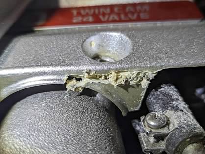 Driver side, rear throttle cover (closest to firewall) before and after cut I used a Dremel with a diamond cutting bit, but you may know a better way to cut the plastic throttle cover. I suggest cutting the throttle cover with it in situ but after you have removed the four, 5mm Allen bolts holding it in place. This gives a little more wiggle room to work.