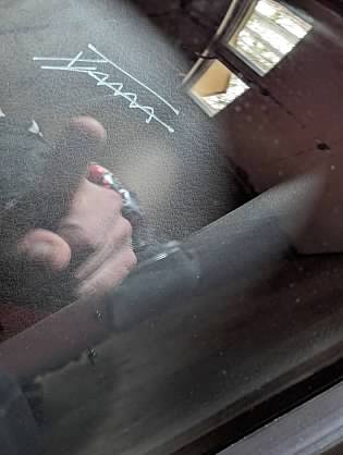 Requires explanation. I am shooting thru the drivers side rear quarter window of my TT. My finger reflection is pointing to Yama's autograph on the rear strut cover. There's also the reflection of my closed garage door in the RUC.