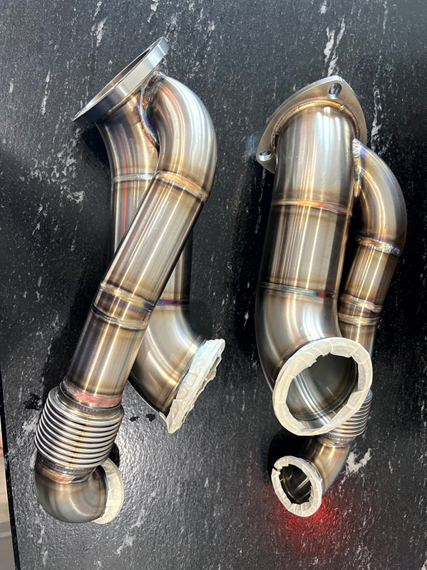 Polar downpipes finally in to match the manifolds.