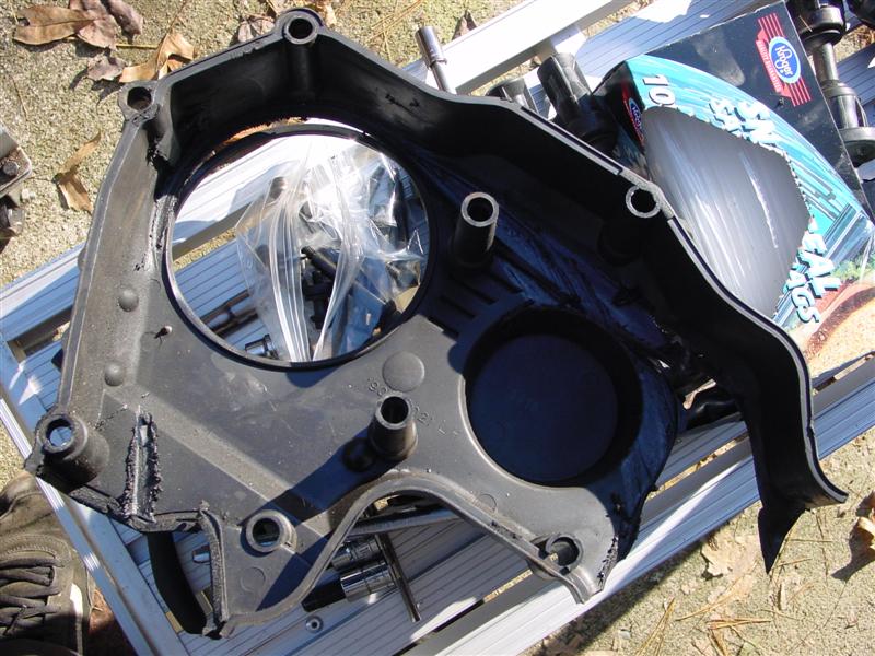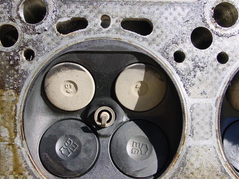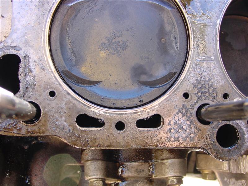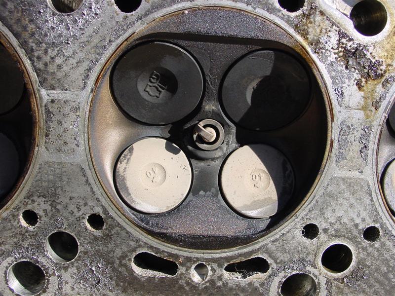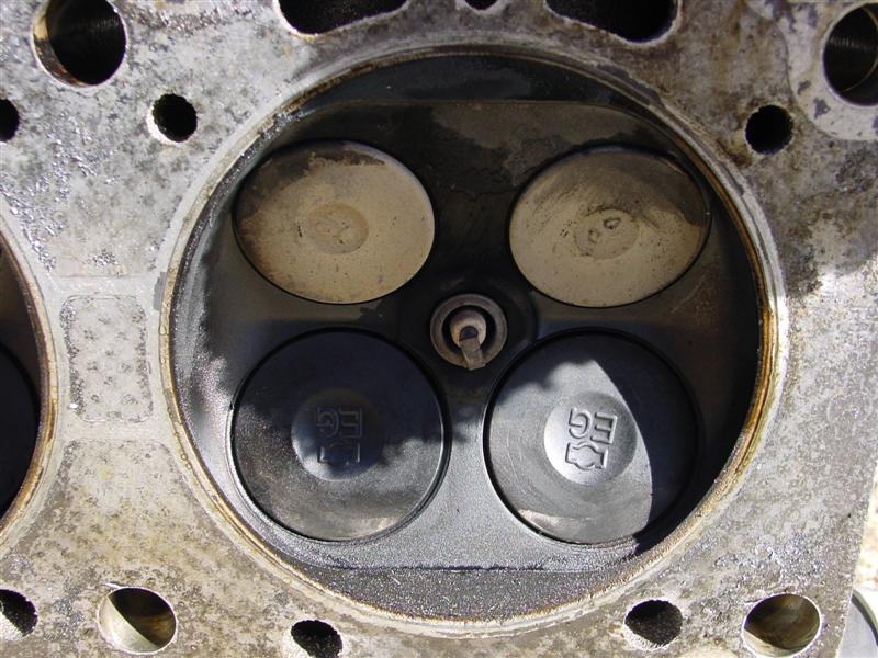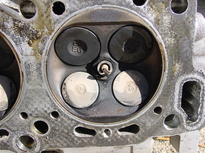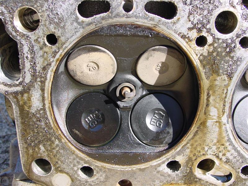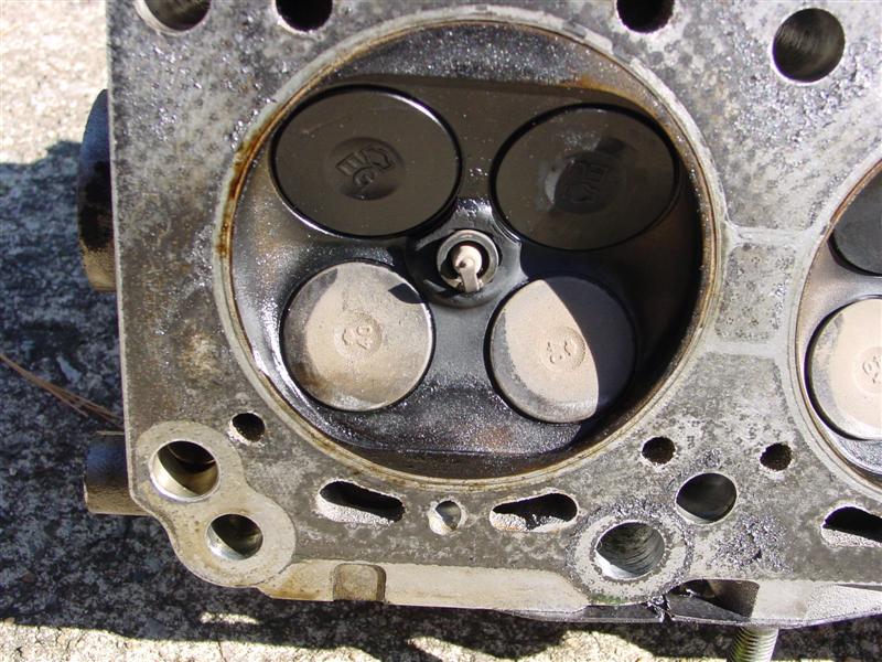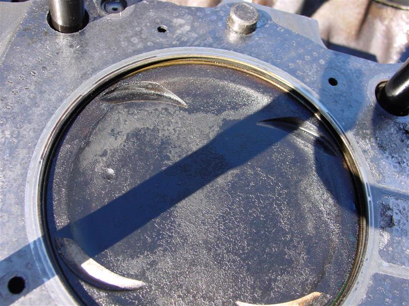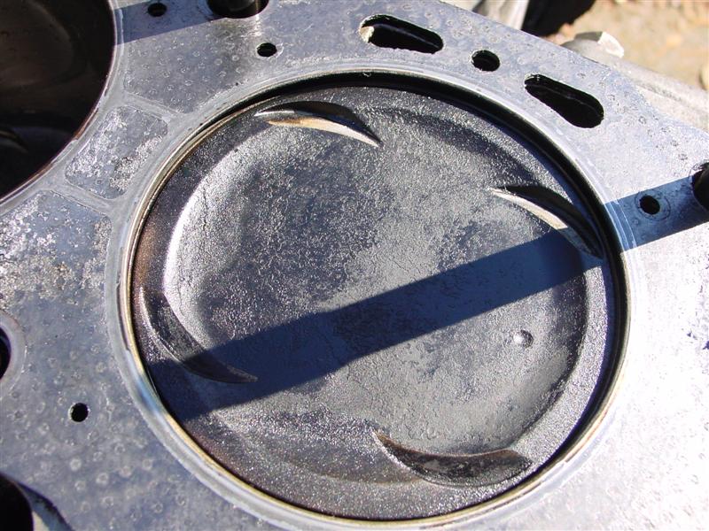 So, Bill (ImTheDevil) and nissanzxman came over last night (Bill's trip being a little more than across town since he lives 120+ miles away) and helped remove my engine, and this morning Bill & I tore down the motor to get the heads off. From what we can see, it looks like the JWT high tension valve springs may have saved my motor from serious damage. I do have a little damage from the spark plug tip breaking off on #6 a couple months ago, and it looks like the valves may have made slight contact w/ the reliefs cut into the pistons, but the two of us think that I may have gotten very lucky, since the valves all appear to be lined up. Take a look and let me know what you guys think.
