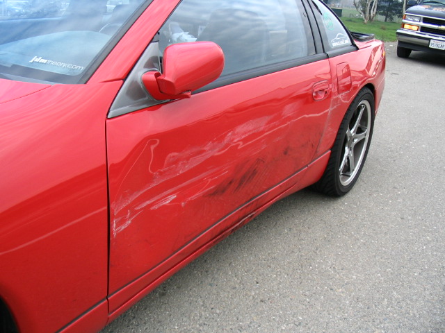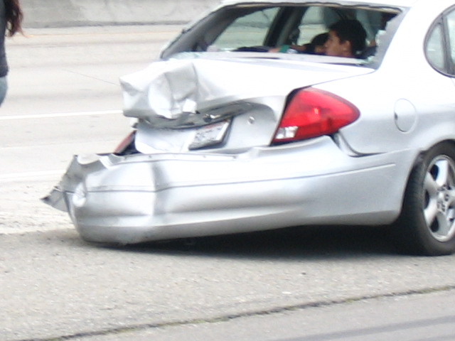| yesterday... The remains of the Ford Taurus that hit me yesterday. You can see there's nothing left of the rear and the rear window was completely shattered. There were 3 people sitting in the back when they were hit and 2 left by ambulance.