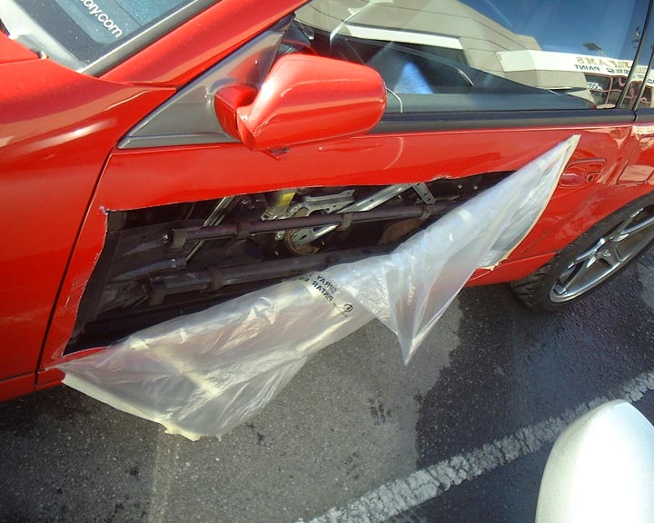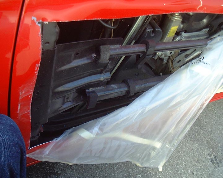 :I just went by the body shop today to see progress on my car. The insurance company wanted to see if the door beams inside the door were damaged. It reminds me of Steve Austin's bionic arms with the skin removed to show all of the bionic inner-workings. If you ever wondered what the inside of your door looks like....