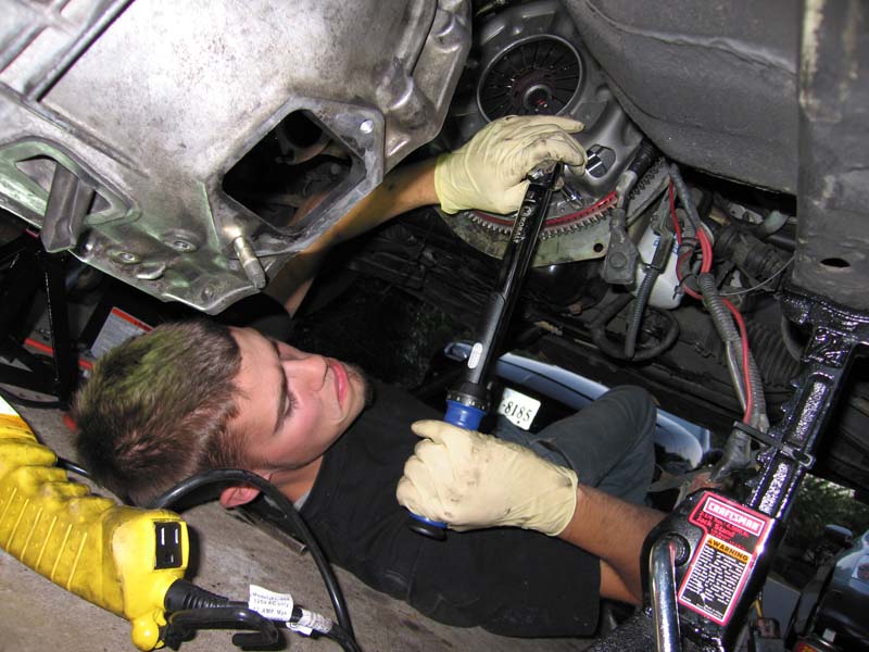 Cam, Wayne, and I each got to experience installing the clutch, as we kept trying to figure out why the tranny wouldn't go in...