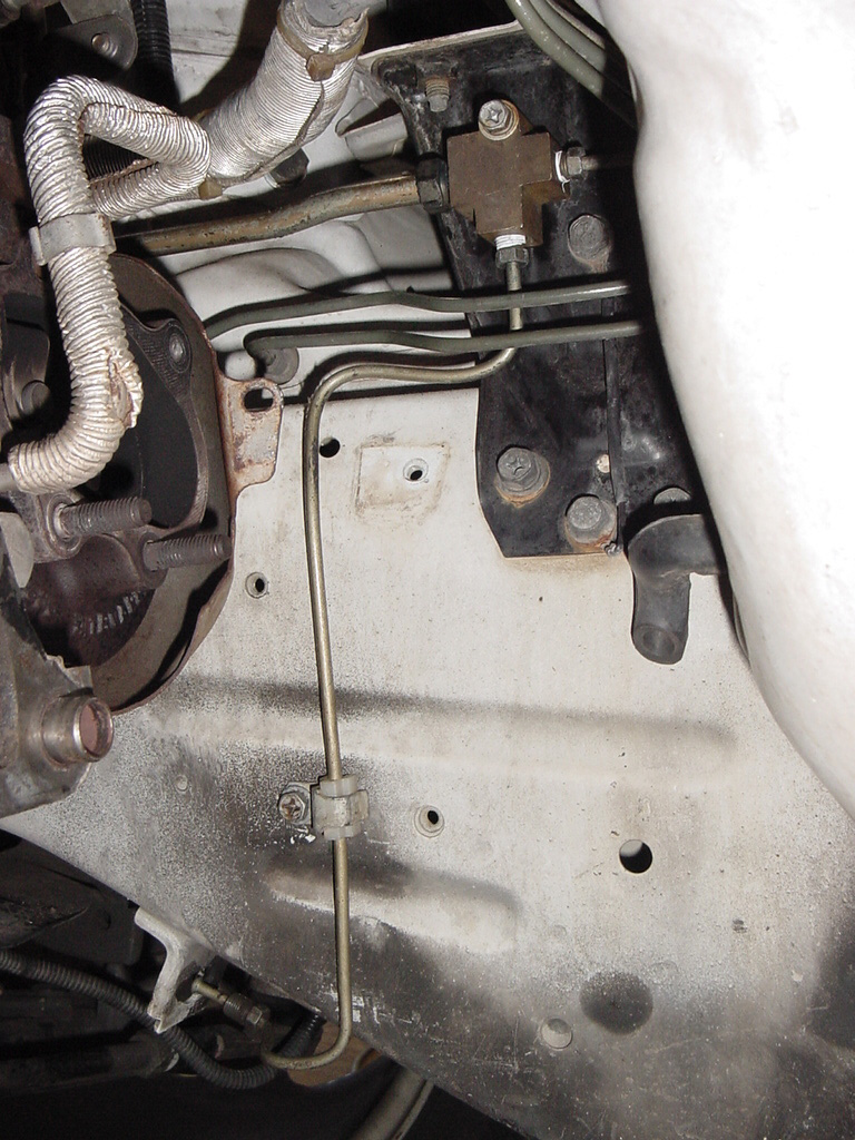 We got it behind all the heat sheilds & all the mounting clips all the way from the juntion to the Master cylinder. Then we ran the high bleed line from the inner fender to the junction.