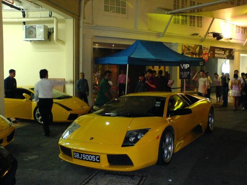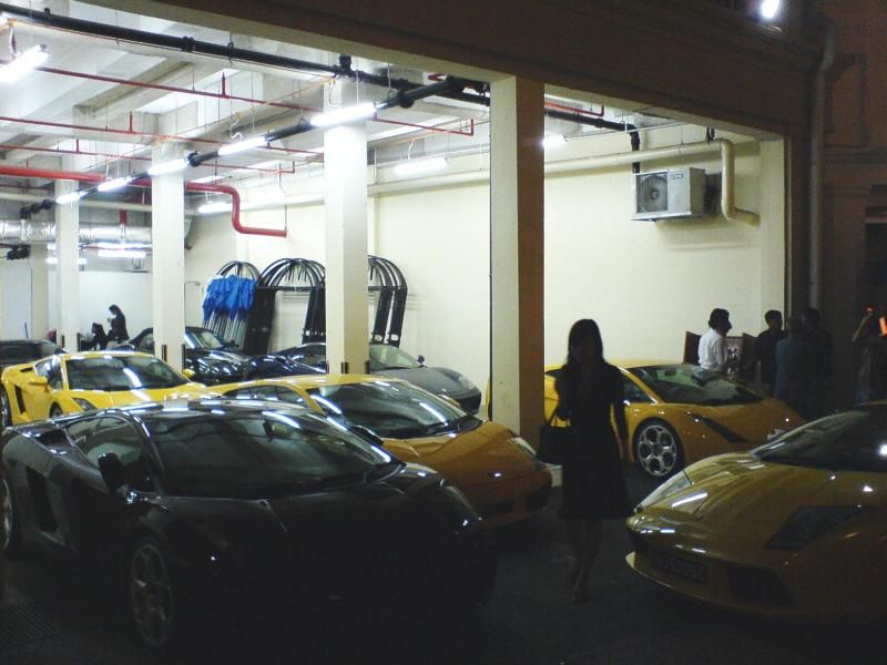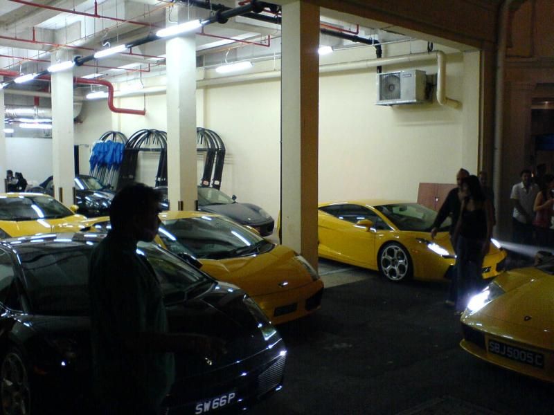 I went to huge club in Singapore called Ministry of Sound. This place is totally stealing all the business from all the other places and rightfully so. It's an awesome place. I was totally blown away by the valet parking here. While I was waiting in line, I saw couple Ferrari's, a Bentley, an Aston Martin, a Porsche Cayenne Turbo, and get this...seven Lamborghini's. Pretty wild. Enjoy the pics. (Sorry for the grainy photos, I took them with my phone on night mode) =Ricky=