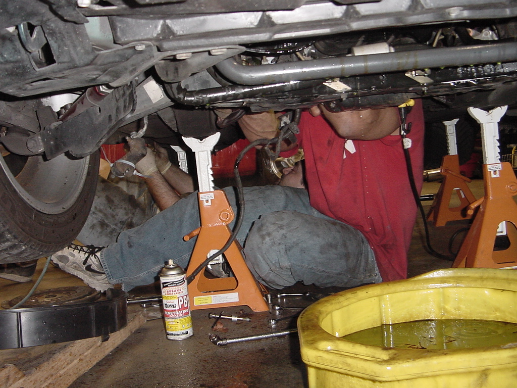 Spencer & I set out to accomplish a few things on my "To Do before Zcon" list and to lighten the amount of parts that I have in permanent storage for my car that never seem to see the light of day. Mission: 60K flywheel & new clutch disc down pipes drive shaft test pipes SPL pivot ball PCV valves Action: Spencer really into his work