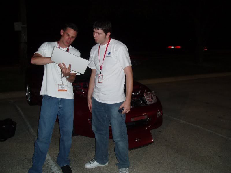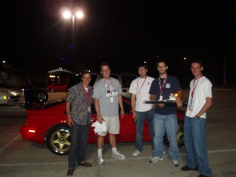 In the parking lot I ended up doing a lot of "manifold" talk. Then Bernie or someone said "do you know who that was you were just talking to?". I would have never guessed it was the real "Aliass" himself. Seriously, "Don" is a great guy. Sure, he's taken me to task big time on several occasions, but was a real gentleman in person and is welcome in my home anytime he's in Minnesota. The dinner was great. I asked Ash why we had to drive all over downtown Dallas just to find a place to eat. When we went inside it was obvious...a 50 foot screen showing classic car chases, intermixed with fine Z footage. The food was very fine too. I offered to trade my key chain for the JWT springs or the 300 Degree rails, but it was no use. Greg and Dallas did a super job putting everything together. On the way out, Anthony (Maglito) showed off his new-won treasures...another guy I was very pleased to finally meet.
