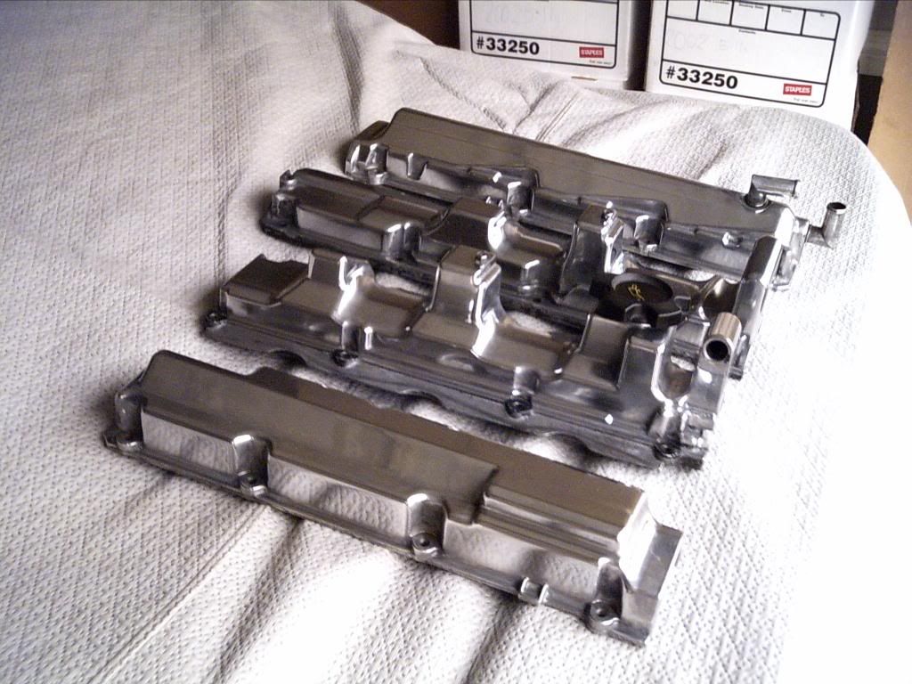 Big Thanks to Chris Armstrong, a local member, gave me a free stock injector to complete this job. At this opportunity of plenum removal, I went ahead to eliminate the EGR, TB coolant lines, PCVs, re-route the fuel system, clean AIV and air regulator, repair some wires and replace some fuel, coolant and vacuum hoses. No porting, honing or biggie size TBs this time, not till engine removal is required. Until the very end of the repair, I decided to get the engine bay a little blings. Went thru a few sanding wheels, buffing wheels, Mother's Aluminum Polish and a buddy's a few nites on finer polish touch, the major parts were finally done. :)