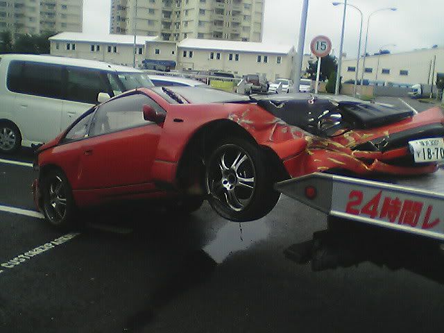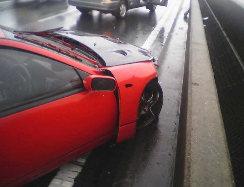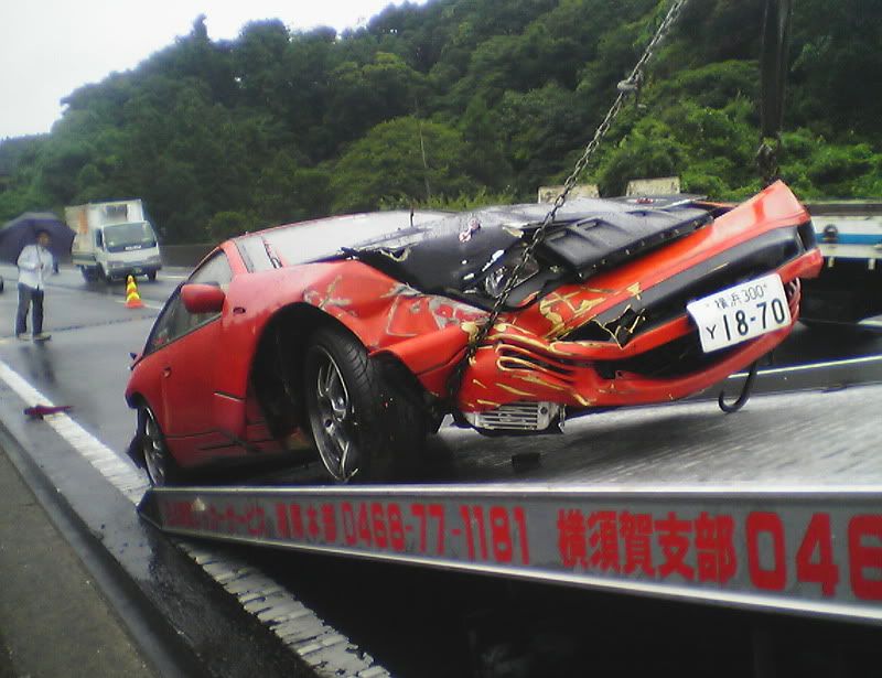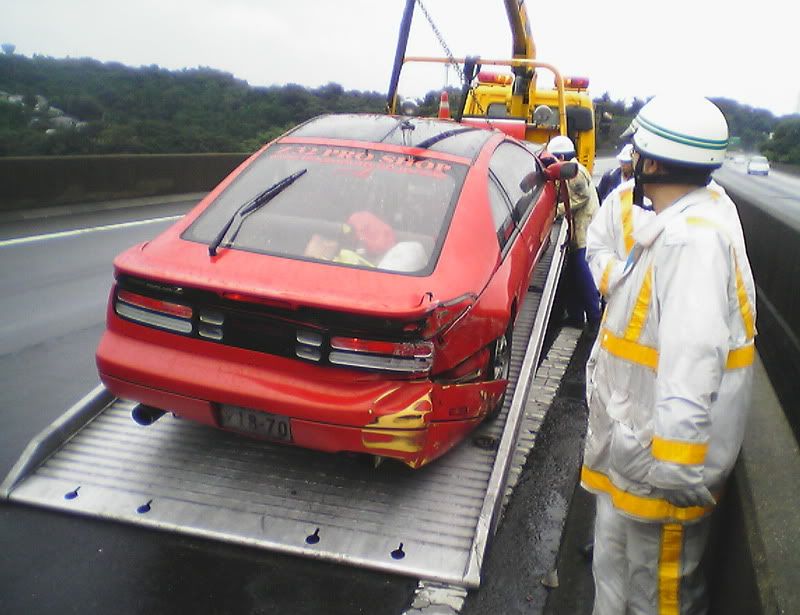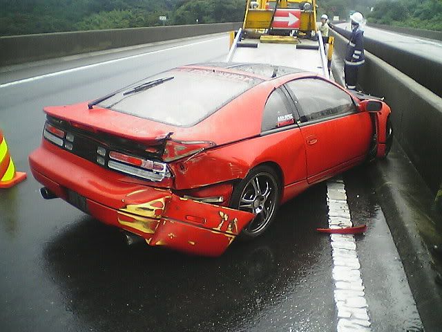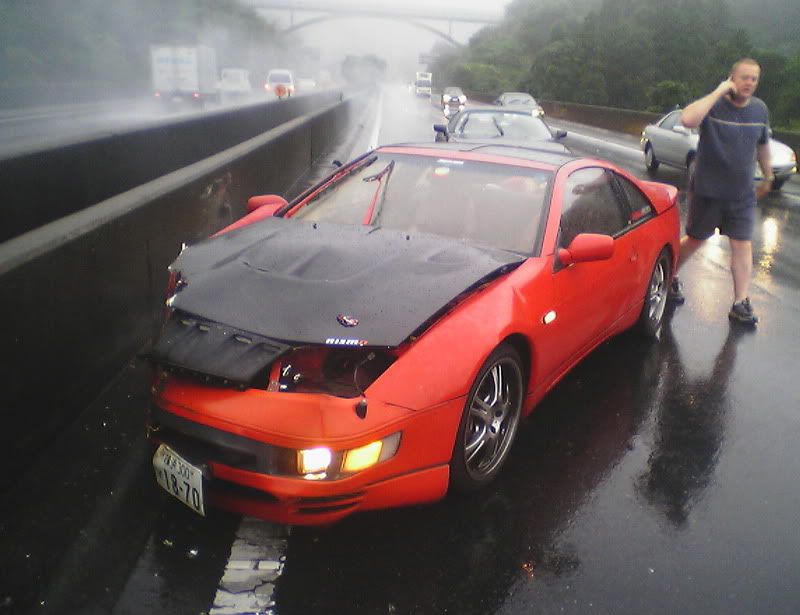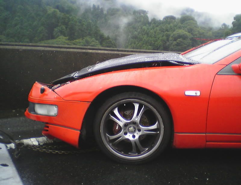 Well, thankfully I'm still here (completely uninjured). The sad part is that my car is not. I was going into work the other morning in the rain. Yes, I was going over the speed limit by a little bit. Just remember that the speed limit here it 50 mph (after conversion from km/h). My Z has never failed on a wet road when going in a straight line. Anyway, I was passing a truck when I saw he was spitting up a lot of water. I hit my brakes to slow down when I hit a pool of water and hydroplaned. I did a 180, slammed into a wall, slammed into a wall again, did another 180, and slammed into a wall for a 3rd time before coming to a stop. Another driver told me I almost got slammed into by a semi truck that barely missed me. I'm spending today with Zski (Pete) ripping apart my car. I anybody wants some parts (that can be shipped through the USPS. Check regulations before e-mailing please.) go ahead and e-mail me with a request. At least I was able to get some calendar submission pics taken first. Hopefully they'll make it in (or at least on one of the covers) so she can live on in some way or another. Z Carnival was at Fuji Speedway on Sunday (one last hoorah) and my Z died on Monday morning at 6:50 a.m. Japan Standard Time. Here are some pics: