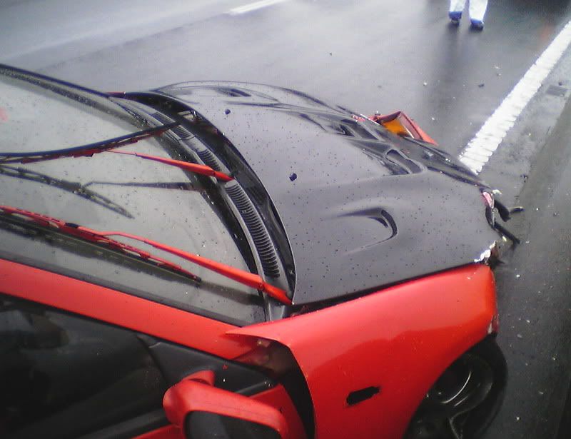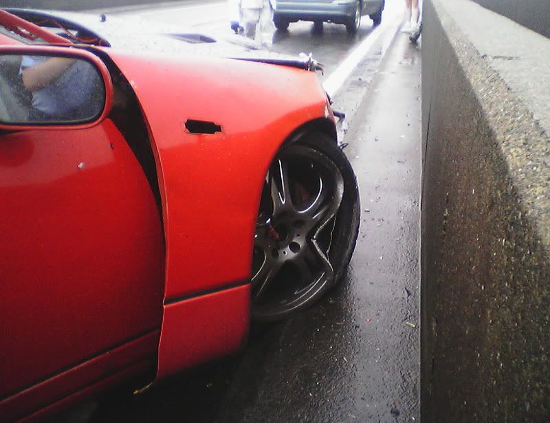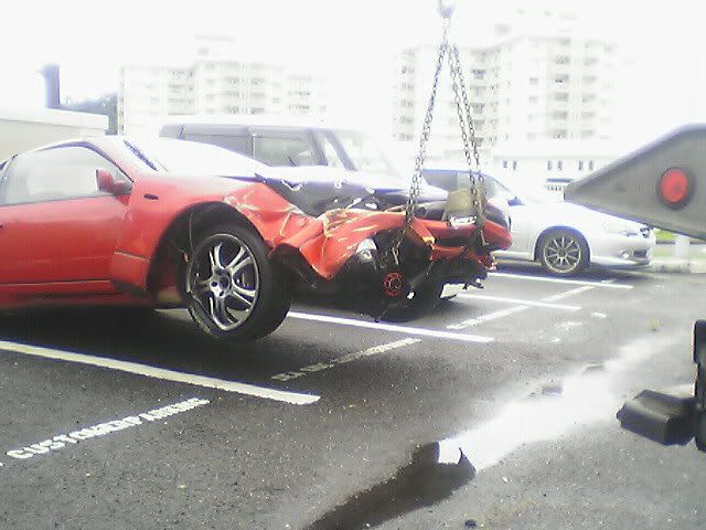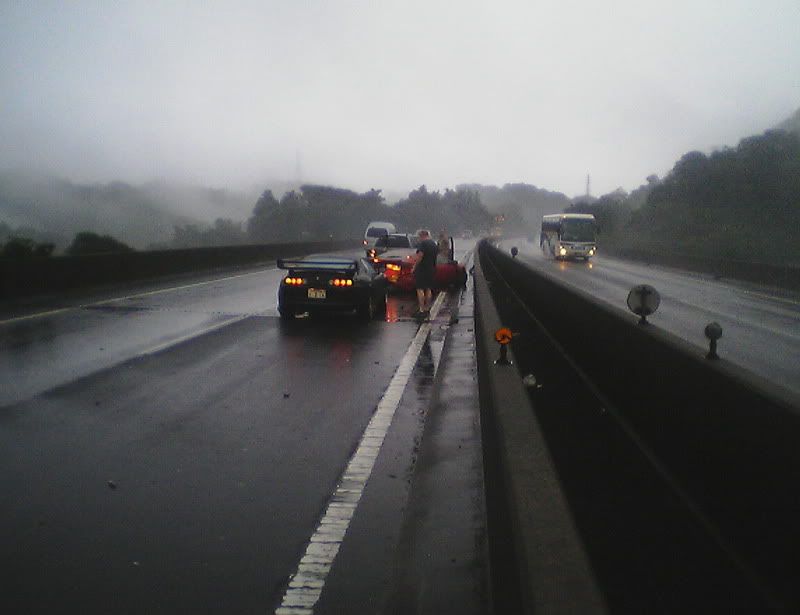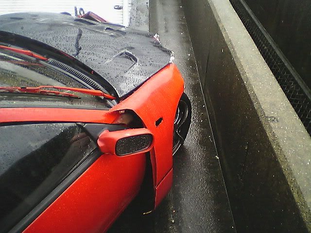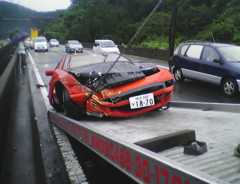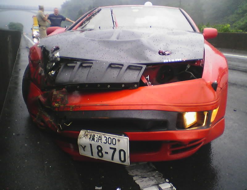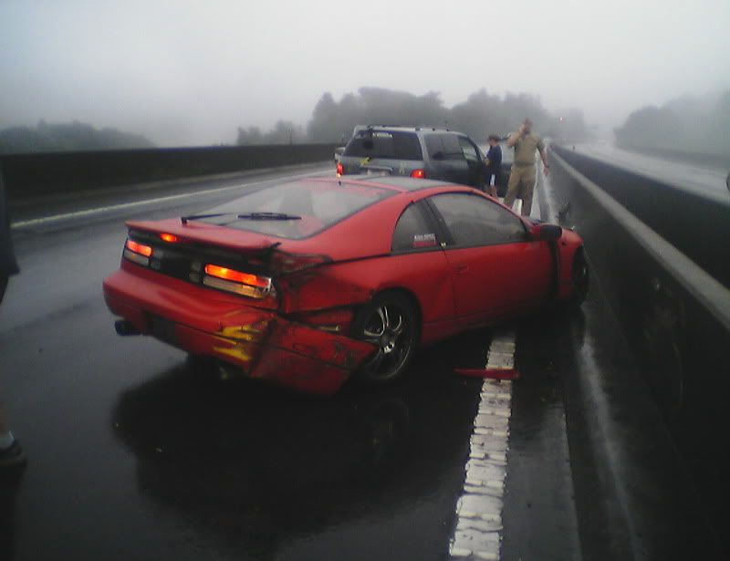 Well, thankfully I'm still here (completely uninjured). The sad part is that my car is not. I was going into work the other morning in the rain. Yes, I was going over the speed limit by a little bit. Just remember that the speed limit here it 50 mph (after conversion from km/h). My Z has never failed on a wet road when going in a straight line. Anyway, I was passing a truck when I saw he was spitting up a lot of water. I hit my brakes to slow down when I hit a pool of water and hydroplaned. I did a 180, slammed into a wall, slammed into a wall again, did another 180, and slammed into a wall for a 3rd time before coming to a stop. Another driver told me I almost got slammed into by a semi truck that barely missed me. I'm spending today with Zski (Pete) ripping apart my car. I anybody wants some parts (that can be shipped through the USPS. Check regulations before e-mailing please.) go ahead and e-mail me with a request. At least I was able to get some calendar submission pics taken first. Hopefully they'll make it in (or at least on one of the covers) so she can live on in some way or another. Z Carnival was at Fuji Speedway on Sunday (one last hoorah) and my Z died on Monday morning at 6:50 a.m. Japan Standard Time. Here are some pics: