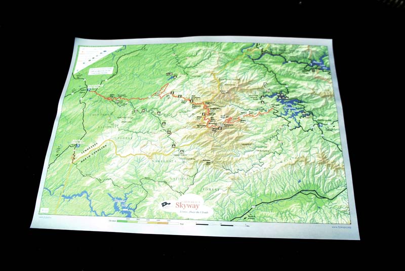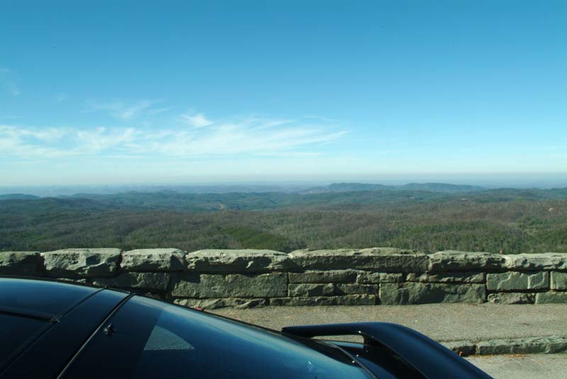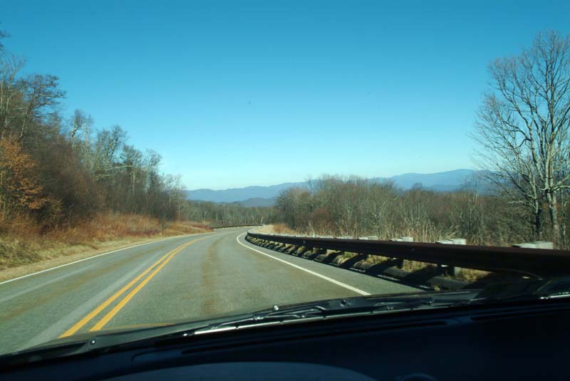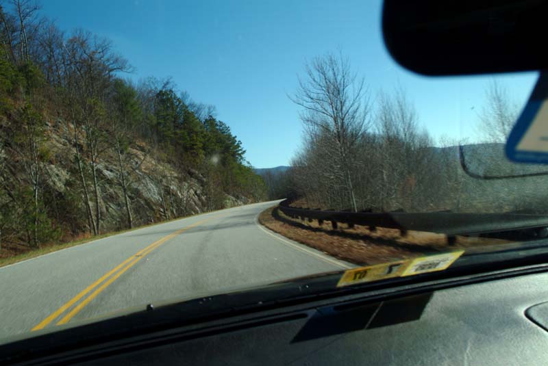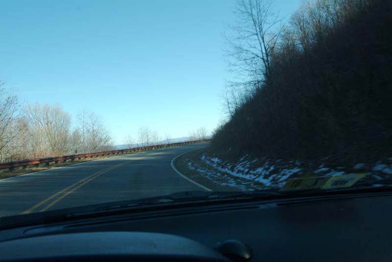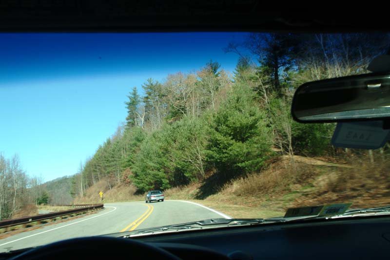 This highway runs across the tops of the mountains, and you can see for miles, it seems - go around a curve, look way down and out to the left, make the next curve, see down and out to the right, and so on for the length of the highway. It had some nice curves to boot. It's the red road on this map on my hood: