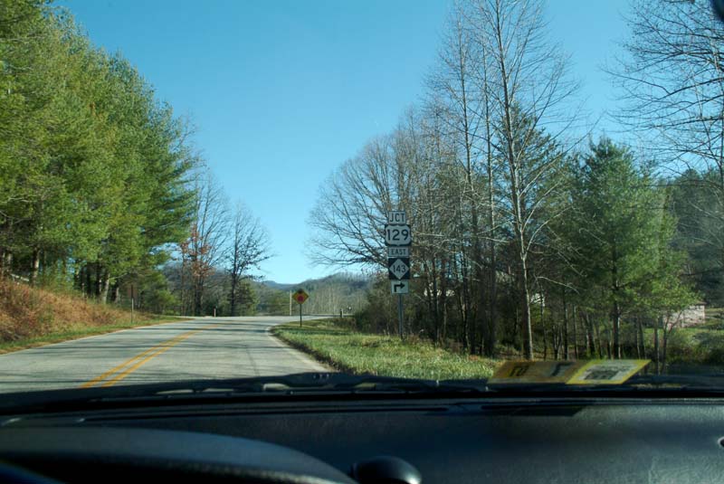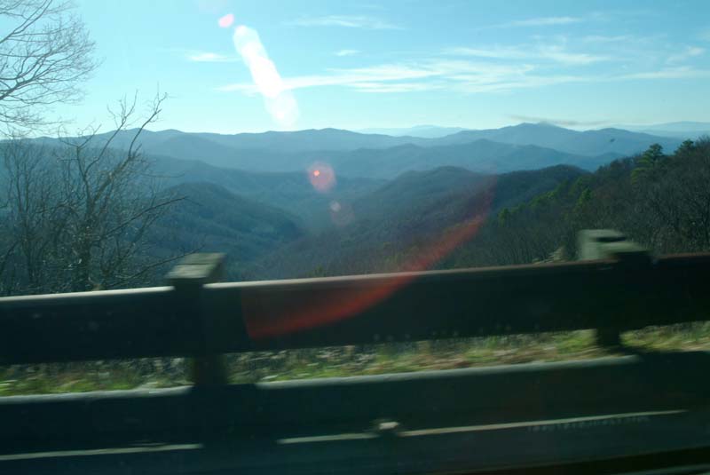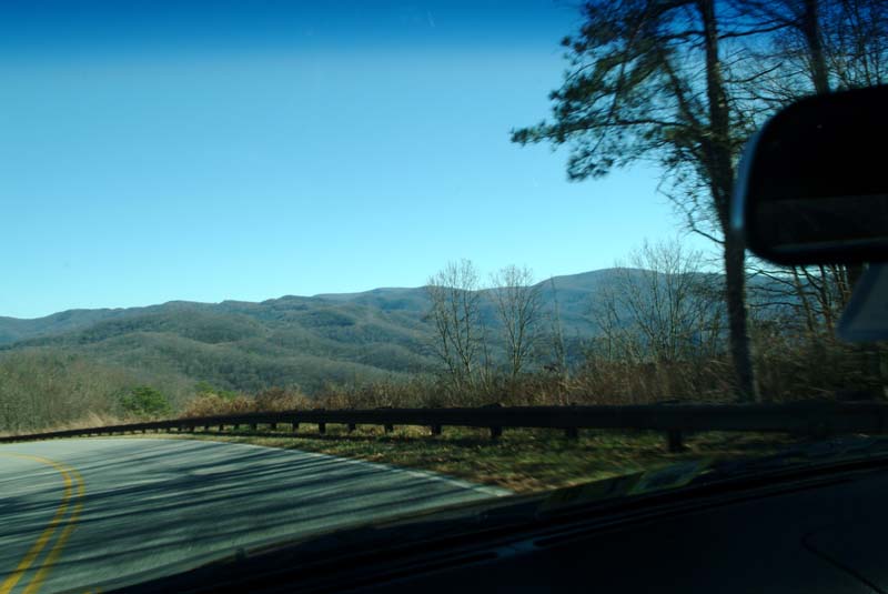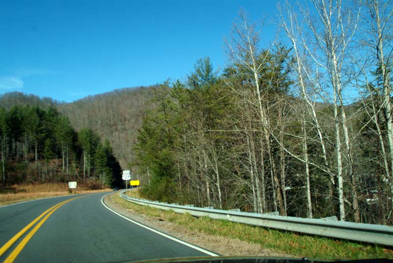 At Ducktown I took Highway 68 (mileage: 97283), which was just beautiful. At Tellico Plains I followed B's advice and caught the Cherohala Skyway (mileage: 97316, time: 12:58), highways 165 & 143, and that's where the fun began -