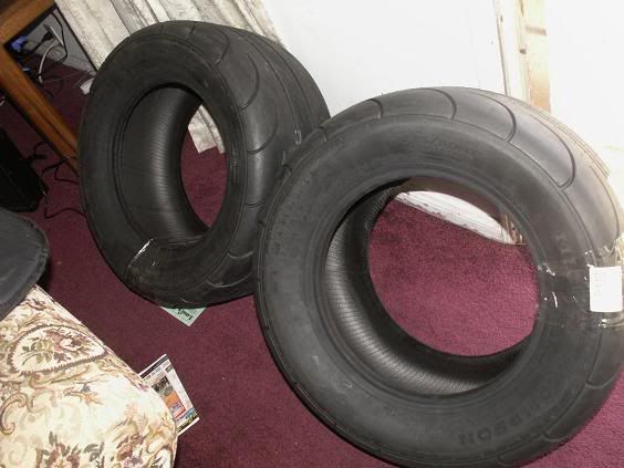 them off. An hour later, the mail man rings the doorbell and tells me that he has a package for me. I didn't know what else I could have ordered that was coming for me. I go to open it and remember that I won a mask on ebay. Anyway, here are the pics and you can see how excited I was when I got my tires from looking at the third picture.