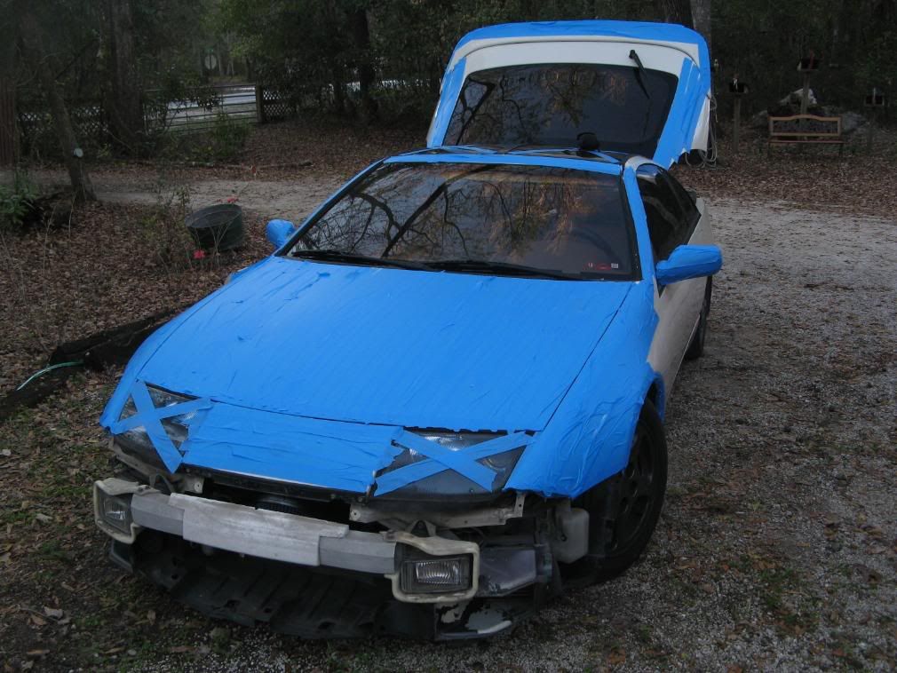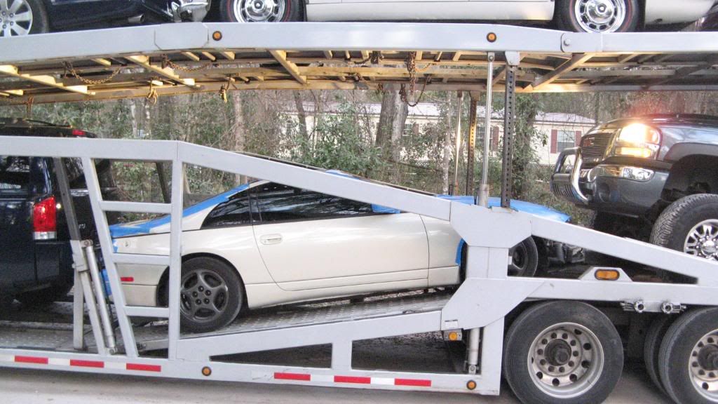 I'm having the Z shipped from FL to CA. Since I only had less than 3" of clearance, I decided to remove the front fascia. I also got her taped up and ready to go on the truck (open trailer).