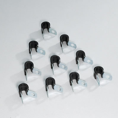 Hose Mounting Clamps, Cushioned, Steel, Cadmium Plated, One .375 in. Diameter Hole, Set of 10