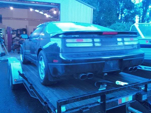 | Took me FOREVER to get all my stuff ready and installed. Took another 2 hrs to get it on the trailer ( no engine) and the rear i-Forged wheels won't fit on the trailer if installed on the Z.. just a little too wide.. BTW.. the Z is going to texas for its widebody.. front and rear.. I know..sorry for the crappy pics.. but I'm in a rush and figured I'd post before I hit the road..   ![]()