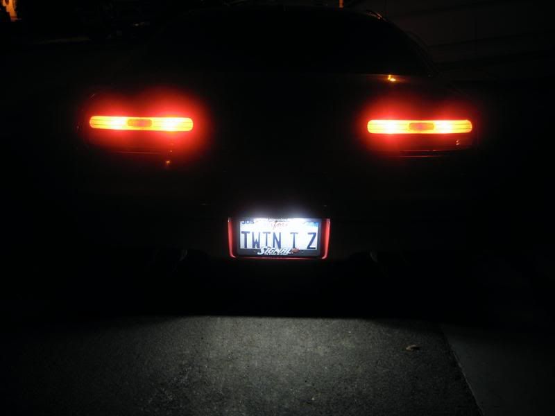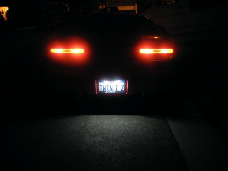 I had a chance the other day to install the LED lights for the license plate. I went over to Jay's house where we installed the newly heatshrink wrapped panels. In case you want more info on that, here is the original post [ http://www.twinturbo.net/nissan/300zx/forums/general/view/2213190/LED-License-Plate-Light-Update-Protective-cover.html ] I bought the LED's off of Jay from some of the extra stock that he had. He did the heatshrink for me and I must say the installation is very straight forward because the lights come with adapters for the wedge bulbs and for the dome light connectors. Before: This is with PIAA Superwhite Wedge Bulbs and cleaned housings (Excuse the quality, i did not have a tripod) As you can see, they are not that bad. However, i had already previously cleaned the housings very well to remove all the caked on dirt on the outside (and inside) of the plastic cover.