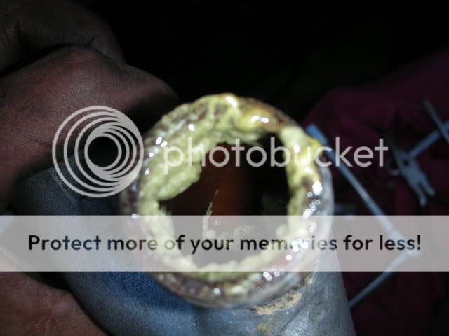 | Hey guys so I ordered all the parts needed to do the engine rebuild from Coz (which should be hear on friday) and decided to begin the tear down today. To my suprise and hopes I was able to take the whole engine down with it in the car between 11:50 this morning and 8:20pm earlier tonight. It was %100 easier after all the water bypasses/ reroutes/deletes i did the last time. Would have been done 2 hours earlier if i hadnt had the "damn i need something" happen. Anyway hear are some pics of the boo boo's i ran into while diagnosing all that went wrong. Open for comments and suggestions. Thinking thats from oil/coolent mix maybe???