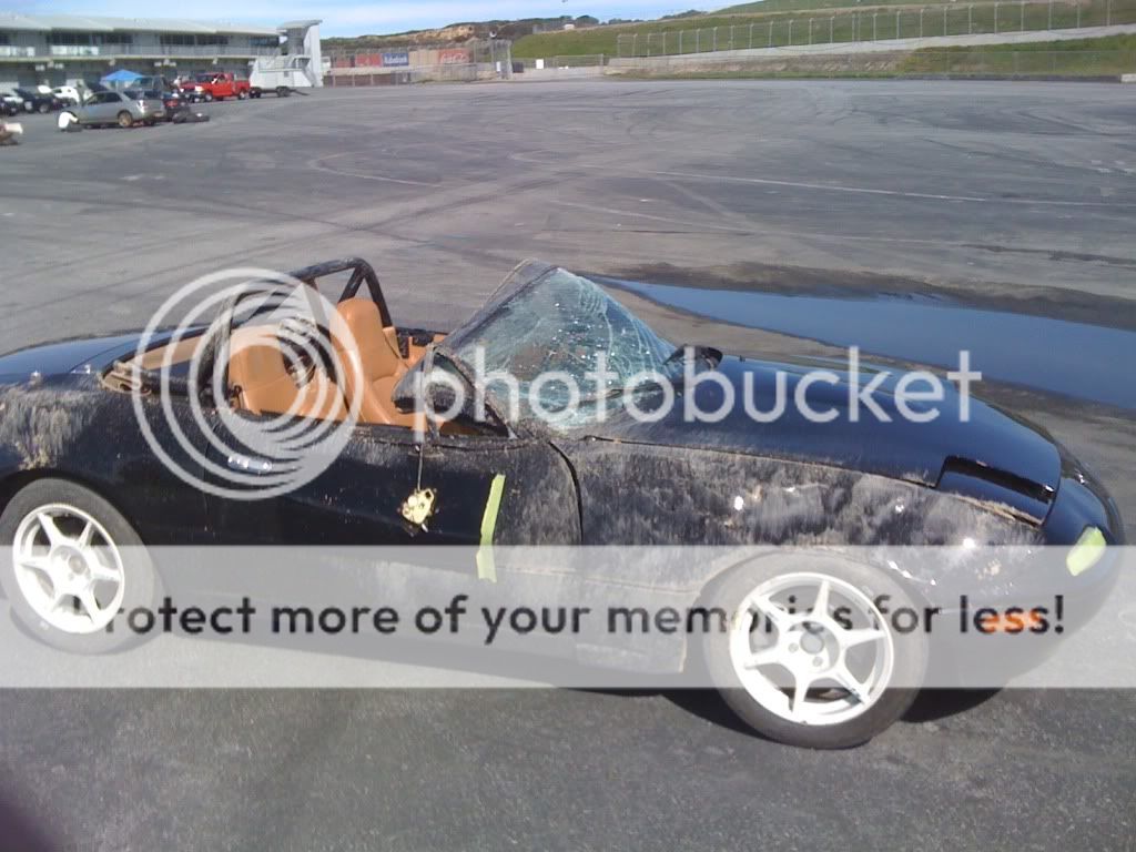Two cars had major issues. An S2000 went into the tire barrier at T5, but was able to hose itself off and drive home. This Miata lost it at T9 and wasn't so lucky. The driver had his pride hurt, but that was about it.