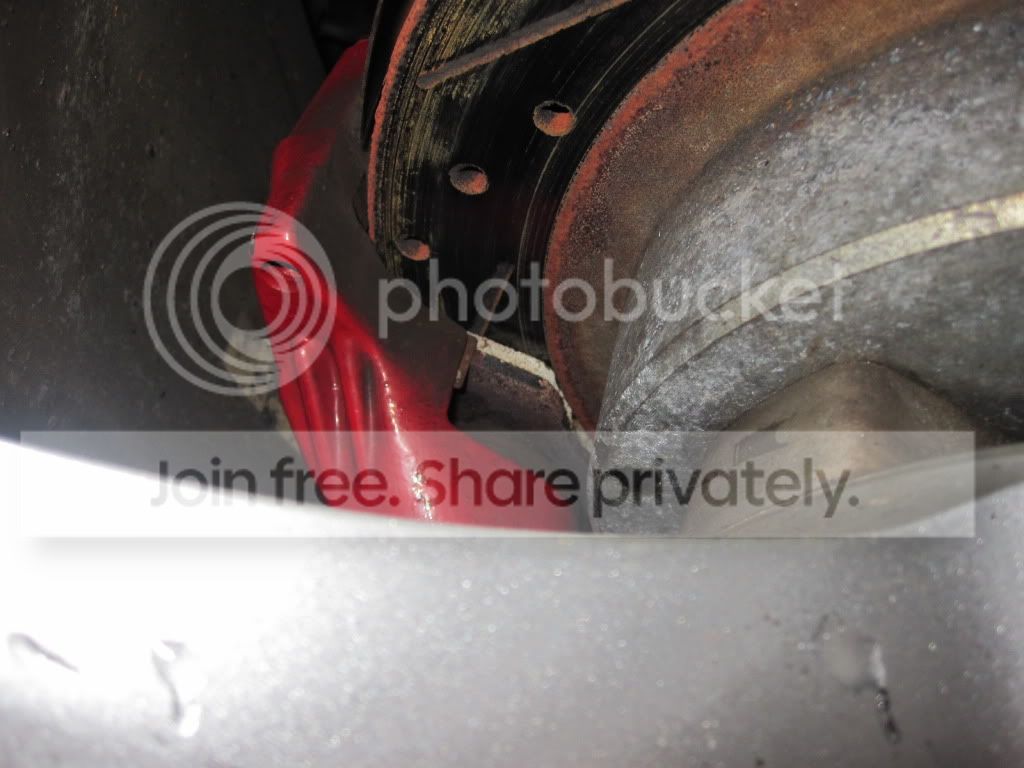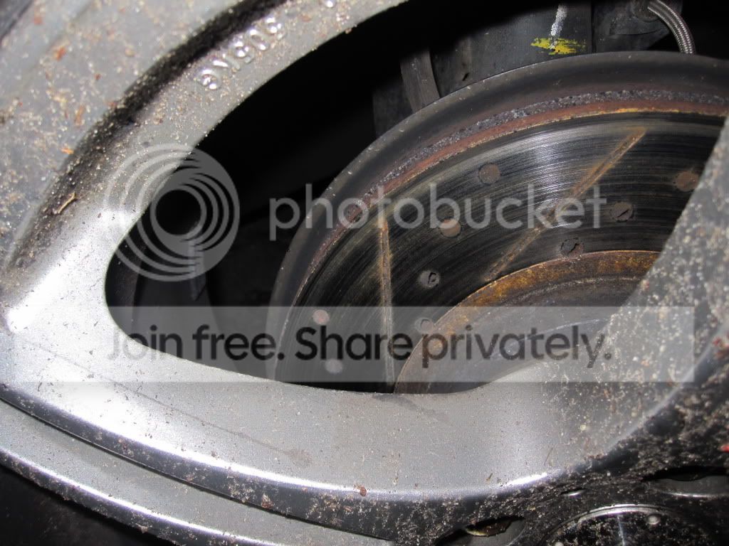 And again, this is why cross-drilled rotors are not the greatest idea. The rear rotor: