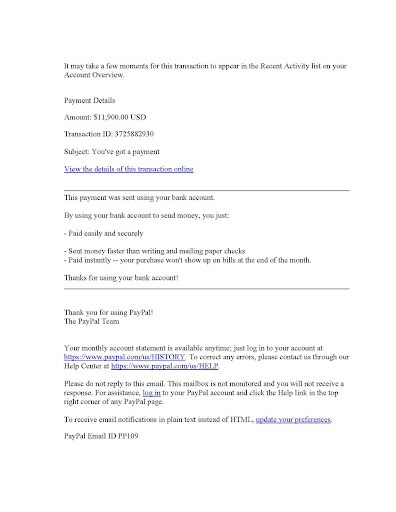 Tony, eBay toldme that it is better for you to send the money from your banh, not through paypal because in this way we can complete our deal faster. You should received already their e-mail with all information regarding our transaction.