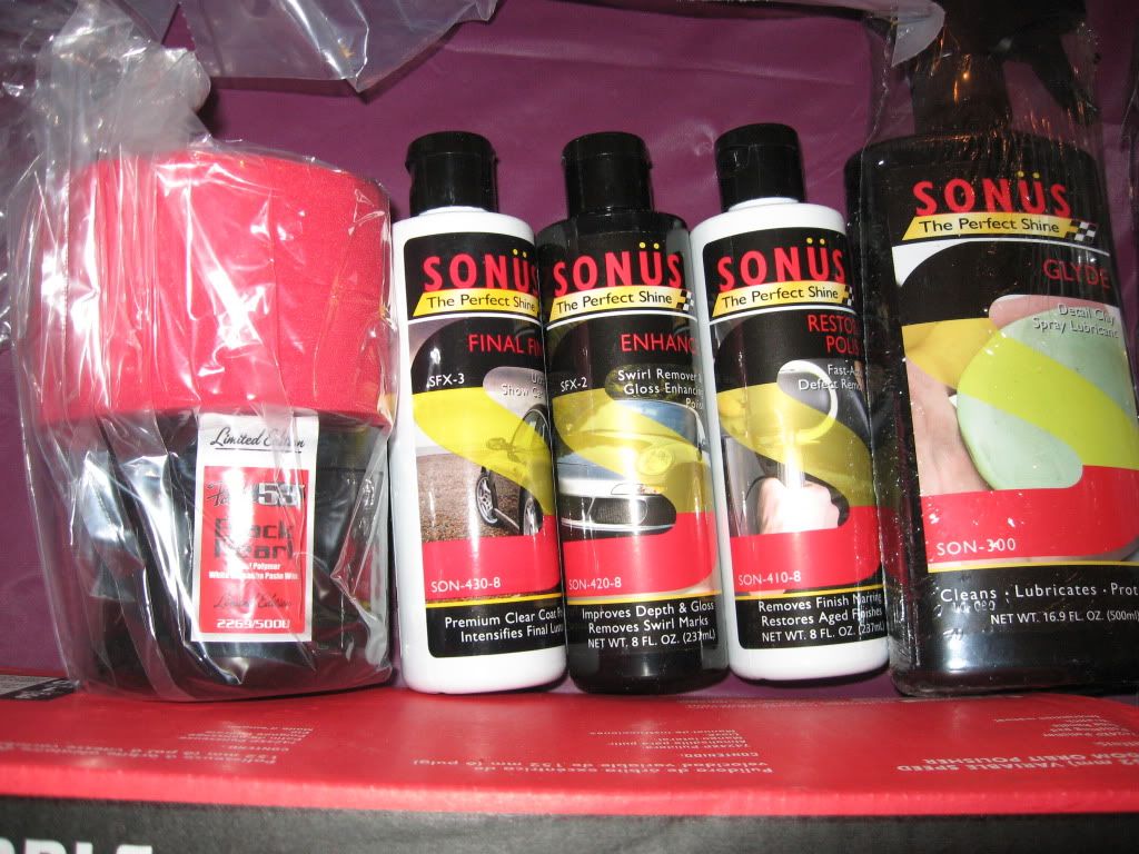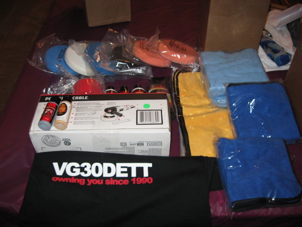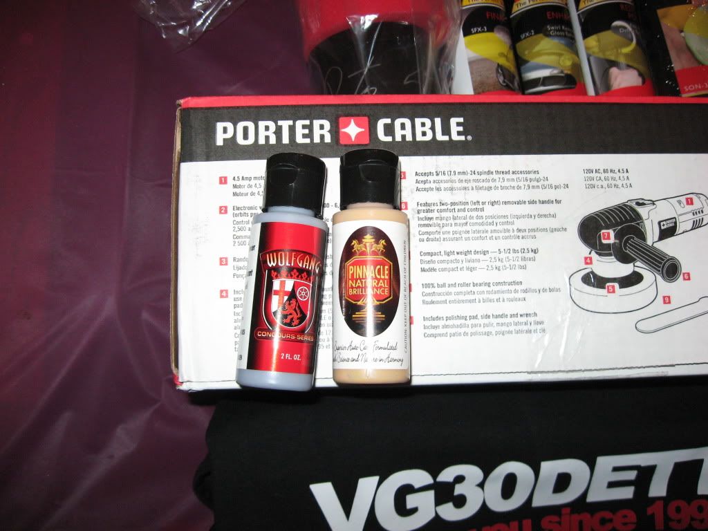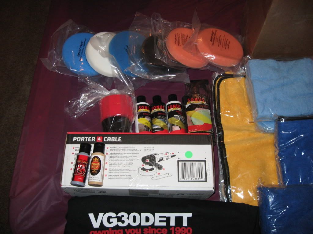 Picked up some drying towels, microfiber towels, polishes, Petes 53 wax, clay bars, a porter cable buffer (coastaltools.com has them fairly cheap), polishing pads, and got the free samples of the pinacle souvern wax and wolfgang glaze. I plan on cleaning it all up once finals are done Tuesday. That is all
