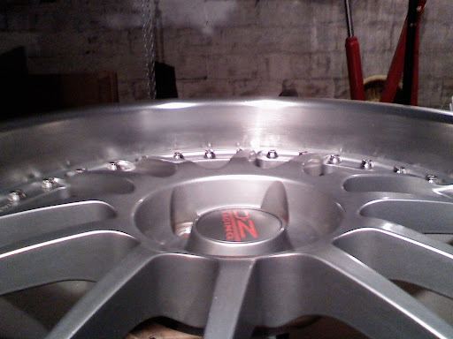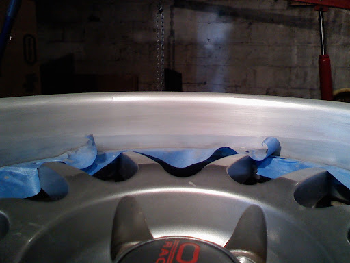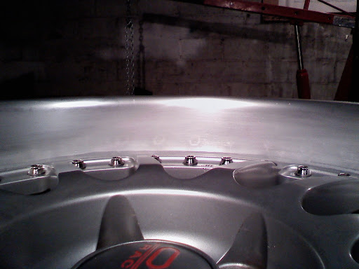 I forgot my real camera, so again, I only have cell phone pics. I knew what I had to do when I posted before, I was really just hoping there was some magical way around it. I took the gouge out with 100 grit paper, but didn't do the whole wheel with 100 grit, and that's what I really had to do. So last night I did exactly that. The last pic was taken just before 1am, I am beat. I think I need to use an abrasive polish to get the luster and fine shine back, but I've never had good results with a rouge and flap wheel, because I can never get the compound to take to the wheel. Any other suggestions? Start: