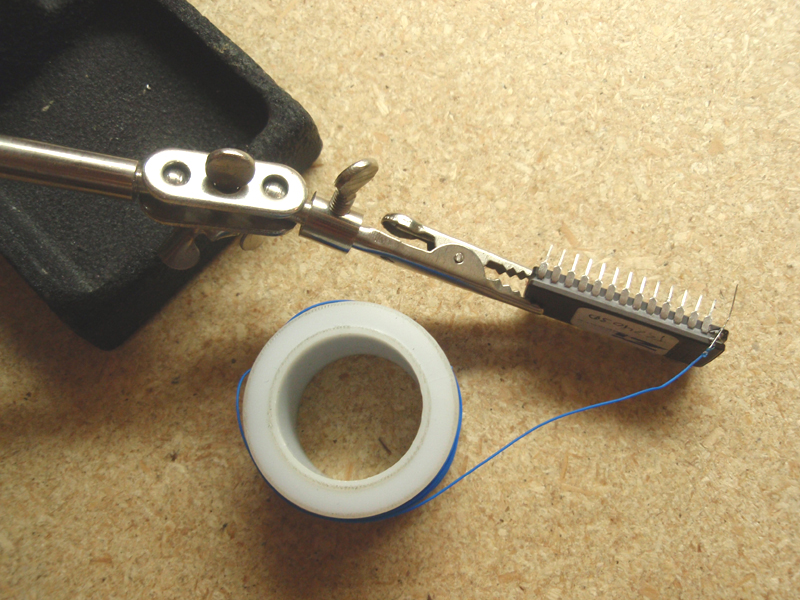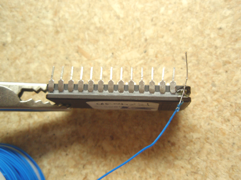 At this point I make a hook to allow more surface of the wire to make contact with the slotted pin sockets of the zif socket in the eprom reader/writer.