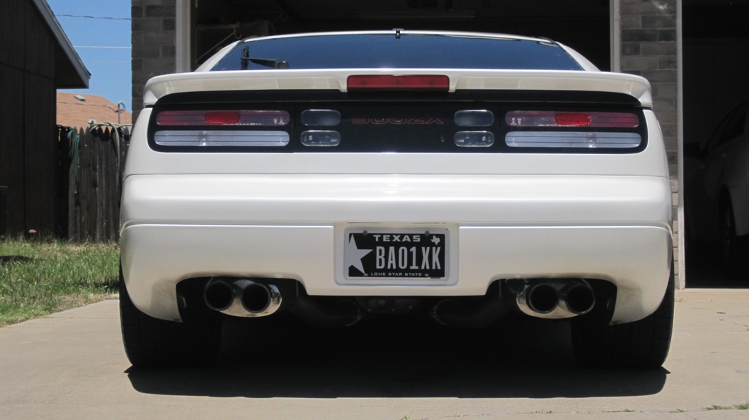 Notice the lack of finishing touches like body stripe and chin stripe. I figured this would be the case and it would be one of my first priorities to put them on once I got it back, but after seeing the car in person, I definitely like it better without both. And I like rolling around badge-less in the rear. People don’t even know what make it is, and if they do, they don’t know if its turbo or not. But anyone with a brain and interest can tell by the sound. 3” everything, no cats, no resonators. It is obvious that it is something serious. All the exterior really needs in my opinion is new trim pieces. And no, I wasnt about to get that fruity blue Texas plate with clouds and shit, screwing up my color scheme. And of course it is still sporting the Wayne Garcia Special Edition interior. Which is beautiful. I wanted to write a review before I left the country in May and I only returned on June 18th. Before I left I had it all torn apart installing ballasts and connecting and soldering wiring so I could have HID’s on all driving lamps up front. I worked on it up until the night before I left and finished it all up so I could get home and enjoy it. Sunday I spliced the wiring in the pod to have them all on at once. Next week I will get some HD video and newer pics daytime and night time. I am very happy with my car after getting it back from Tom. Of course I can still call him anytime with any questions. When I get more comfortable in the car and I rack up another thousand miles I will get it dyno tuned but for now it is running great. This is a shop and mechanic that deserves some recognition and respect in the Z32 community. If you have any questions or anything feel free to email me.