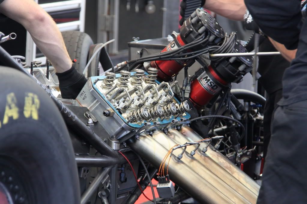 Mac / Fram racing team's pit/garage yesterday. Special thanks to the team for the tour. i hope you enjoy the pictures only took the team around 40 min to rebuild the entire engine far away shots excuse me...coming through catch can in case things go south telemetry antenna to open parachutes if not opened by driver let's step inside the truck.... head rebuild area 100% Ti exhaust valve i gave them mike smith's number coming together all back together and ready for a quick check beautiful dodge funny car rebuild