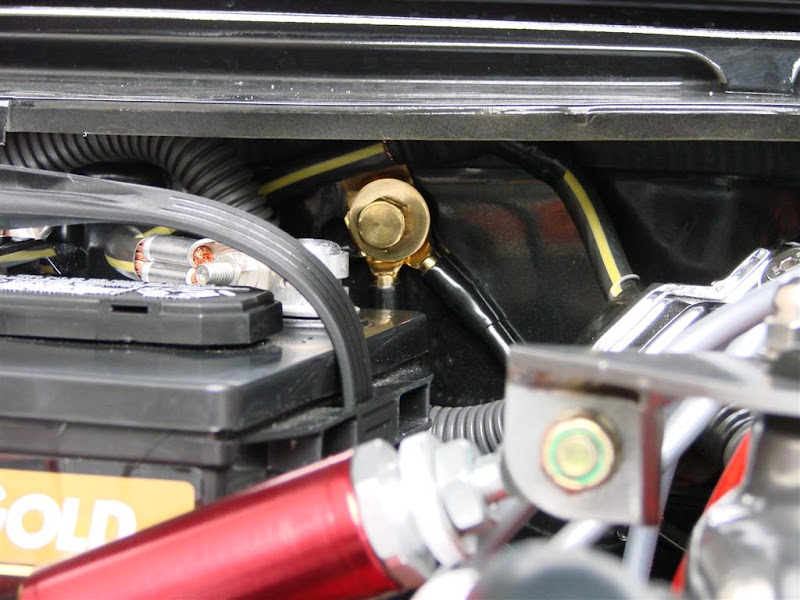 Homemade 8 point grounding harness with 8 AWG wire, gold plated terminals and brass mounting hardware.
