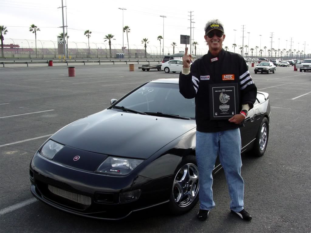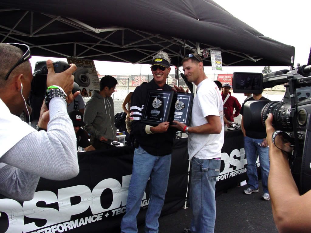 Despite blacklisting they agreed to let him finish the event if he turned down the boost, which probably had something to do with him being top qualifier and a crowd-pleaser. Regardless, this was to be his last event at Fontana so he went out with a BANG. Today's event was also a "Supra Shootout" so it was only fitting that Dean went up against one in the finals, edging him out by nearly a full second. Great job bud and way to represent! Finals slip here. I couldn't grab many pics but here's Dean on the left posing with his winning plaque and Jeff (great Supra guy) that he beat on the right.