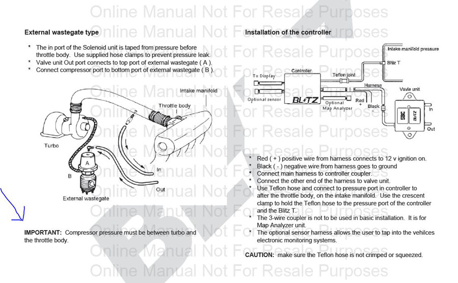 | Everything that I have read (including the manual) says that the valve unit should get its boost signal between the turbo and throttle body. Why couldn't you pull the boost past throttle body? What specifically prevents this from being possible / a good idea? What would happen if you did tie in past the TB's, for example to the balance bar? Thanks