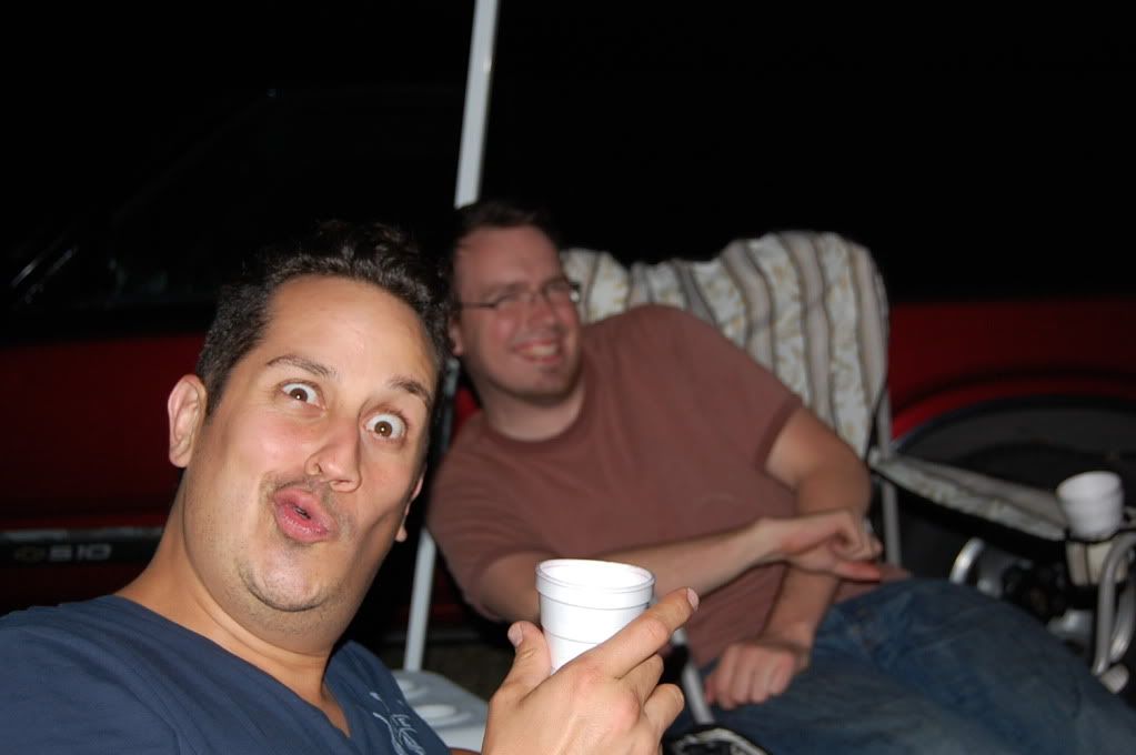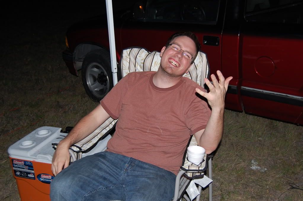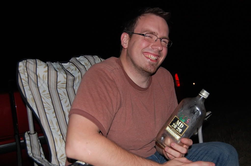 From here, we began to break out the TT.net approved livations.....Shiner Bock beer and enjoy ourselves. All through the night we had golf carts and Polaris off road 4 wheelers hauling ass past us. Some would stop by and watch the screen and partake in some of the sweet Texas nectar we provided. I quickly found out that Mike wasn't much of a drinker, in fact it was only his second time drinking ever. Muuahahahqahahahahahhaha So, I go on a mission to get Mike D....trashed. Mike D after a few drinks of MD 20/20. Starting to feel the effects.