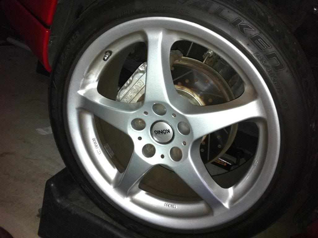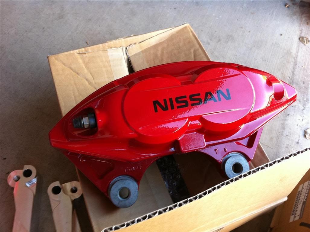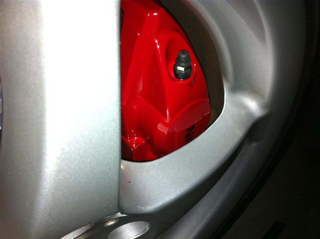 Moving on to my Akebono Brake kit that I got from Coz... for the money you can't beat this kit imho... stock Nissan is a bonus!! Everything and I mean everything fit perfectly! Yes the brackets are expensive... but when it comes to brakes, I want the fitment to be dead on perfect :) I decided against the lighter two piece rotors due to the fact I don't road race and they were more expensive. I must say with the spirited driving I have done, these brakes feel much much better compared the stock size Brembo upgrade I originally had... and they fill out the wheels nice! HIGHLY RECOMMENDED!!