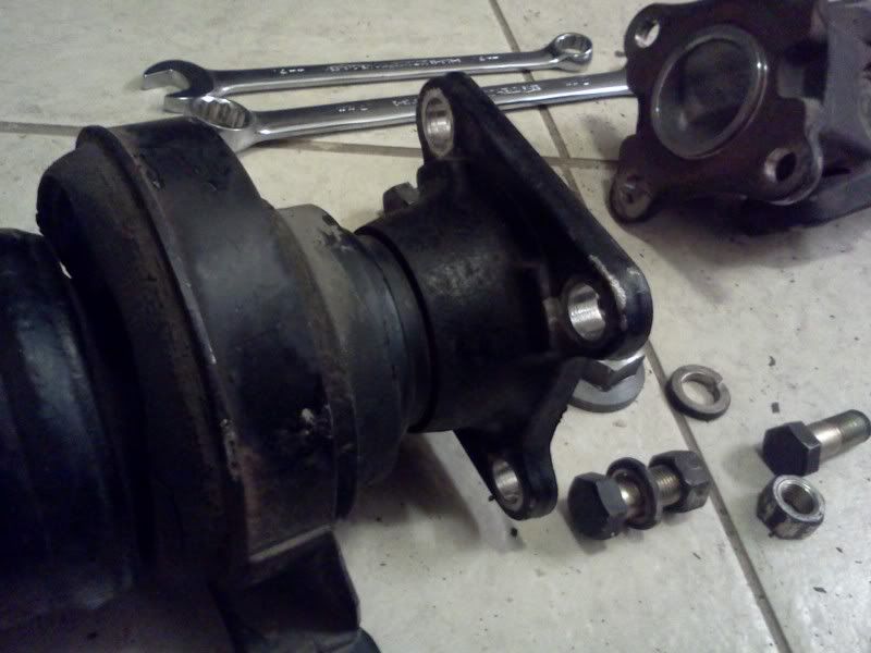 | So in the middle of my transmission swap. Heres the scoop: I bolted my TT auto tranny in the NA 2+0 no problem the mounting bolts line up nicely etc etc. Now I go put on the TT auto driveshaft... and its too short! So i line up the NA auto driveshaft and it doesnt fit into the tranny but it seems to be the right length. So I am currently swapping the rear part of the driveshaft to lengthen the TT driveshaft. Heres the issue I cant seem to get the center mounting thingy to come off... I thought after i took the 27mm center nut off it would just come off but it didnt i bashed it with a rubber mallet to no avail So how do you take it out?