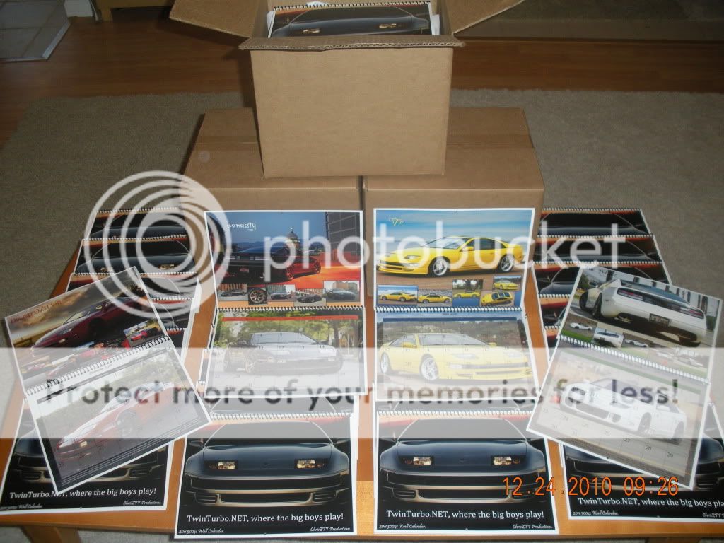Please make your selections for next year’s calendar. So it is voting time for the 2012 Twinturbo.net calendar. Thanks for the patience and the participation to all the members who help this come together. Finally all the pics are loaded and selected. We have many beautiful cars to vote on for this coming year’s calendar. Here are the entries that followed the instructions. There were a total of 887 pictures sent in totaling 3.12 GB. People were very picture happy this year. Please read the information below and have fun. ChrisZTT How to Vote 1) Review all the pictures and select the top 12 cars you want to see in the calendar. 2) Reply to this post and put the NUMBERS for the cars you selected in the SUBJECT LINE. Any additional comments can be placed in the body of the post. General information 1) Each car has 2 pictures posted for you to review. Last year I put up to 4 pics but I want you guys to have some surprises this year. Don’t get confused when voting, look for the names of the people above each group of pictures. 2) No votes will be accepted from accounts less than 2 months old. All votes will be reviewed by me for honesty. If I feel there is any funny business on the voting than those votes won’t be counted. This year I have invited members of 3ZC to participate as well, I forgot to warn them of the 2 month minimum membership. So to make up for my mistake I offered to accept some votes by email if they are unable to get onto this site. I believe any email votes will be very small since most people have accounts on both sites. 3) Please keep all comments polite and professional. If you don’t like a person’s car or have some issue with it, KEEP IT TO YOURSELF. On the other hand, nice comments are always welcome and accepted. 4) All the cars that were submitted are posted with a few exceptions in which only one picture was submitted or the images resolution was too low. The rules called for 4-5 pictures and 5+MP. 5) The post will be stickied for 2 weeks. Damon was nice enough to agree to sticky it for us so make sure you thank him. :) After the two weeks, no votes will be counted. 6) Everyone is welcome to vote whether you are getting a calendar or not. If you ARE getting a calendar then please indicate that and the quantity you want in the body of the post. I am trying to get an overall idea of numbers to tell the printer. 7) The pictures are in alphabetical order. Amazingly we got an Aaron to enter this year plus Josher changed his name to AAJosher so Ahmed would not have to bear the burden of top of the list again for the 3rd year in a row. Wasn’t that nice of him? =) 8) The calendars will be similar to last years, spiral bound, 17x11.5 when opened and printed on picture quality hi gloss photo paper. They will be $25 shipped anywhere in the US. I will ship outside the US but you need to contact me for a shipped price. 9) You can order calendars starting in 2 weeks, after the vote. There are a few options for calendar orders, you can use Paypal to Chris.Touponce@comcast.net for a total of $25.50 (the 2% fee is in there) or you can send a check/money order for $25. If needed contact me for my address. If using Paypal, make sure your shipping address is the one attached to your Paypal account or you send me the correct address. Here is a sample of the calendar from last year.