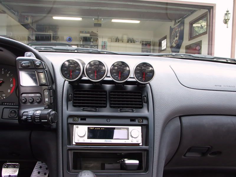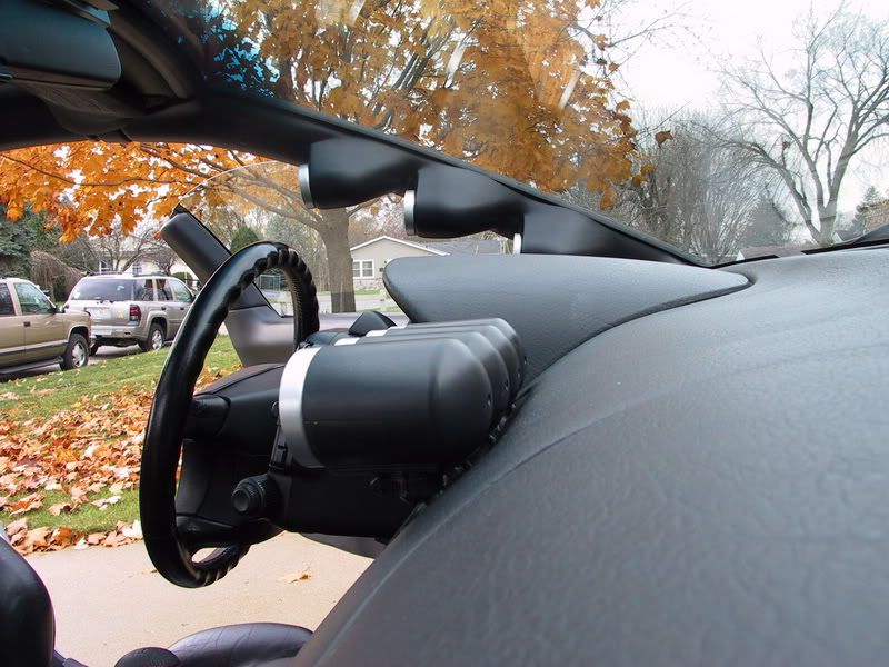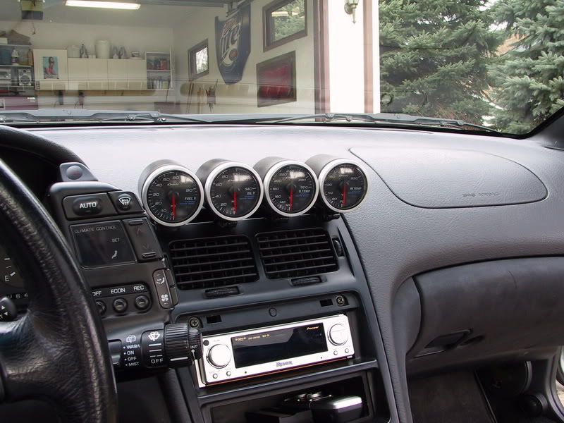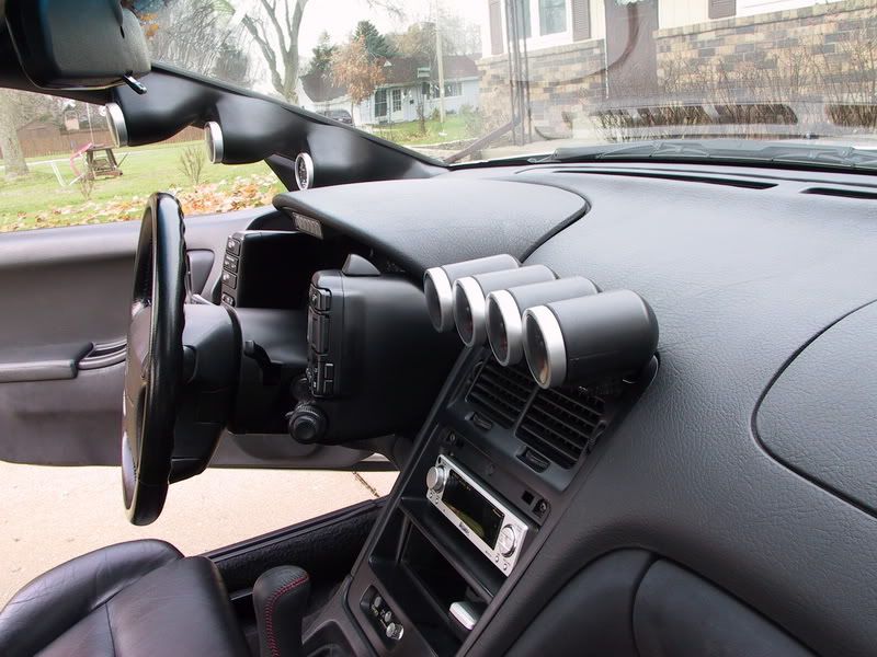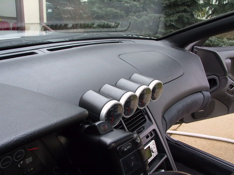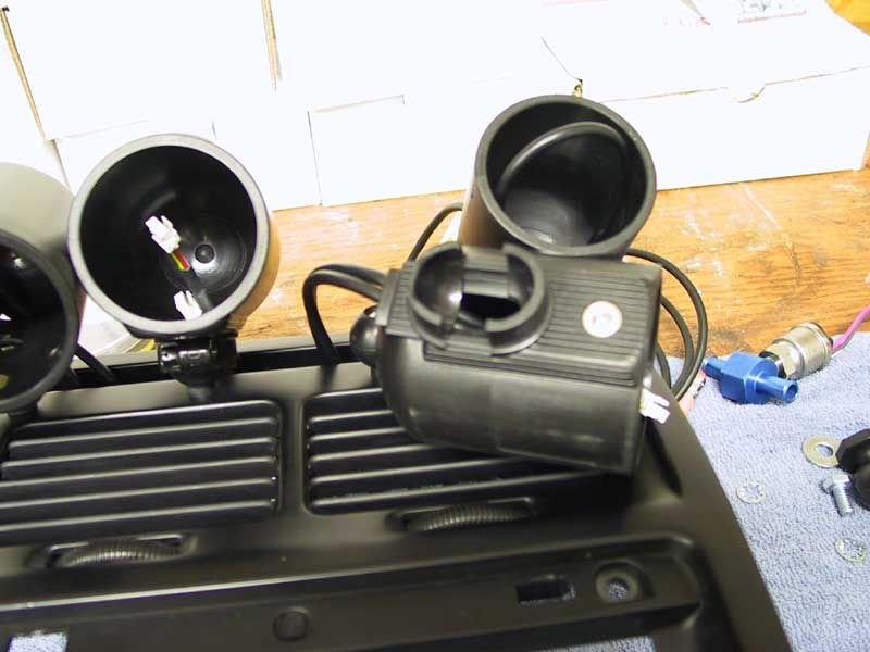 I used these gauge Max gauge cups. Very easy to mount and adjust. Use some of these pics to come up with your own idea of alignment and spacing you want. The whole thing can easily be removed if you can find a spare center dash piece.