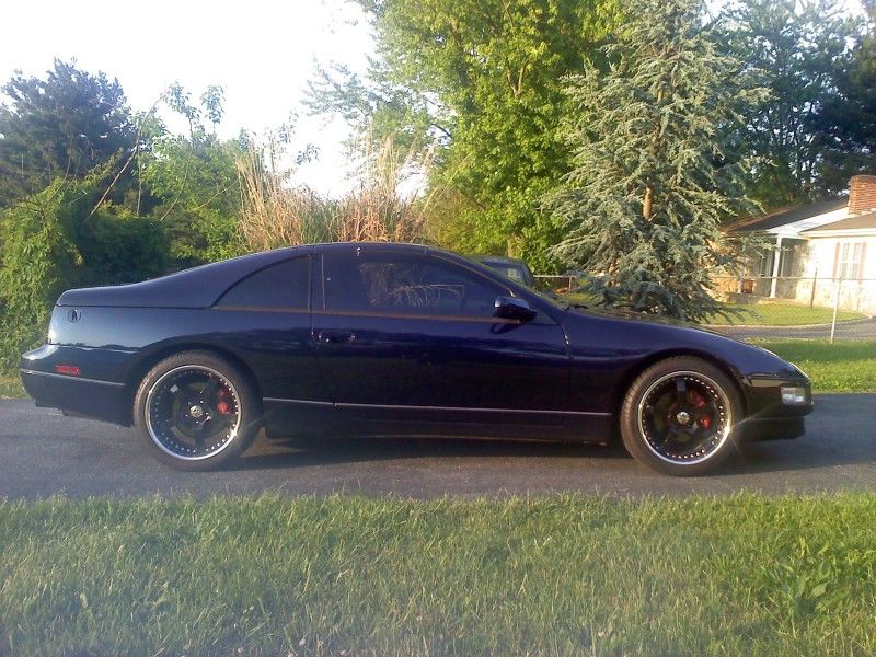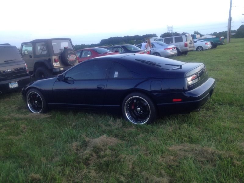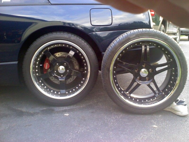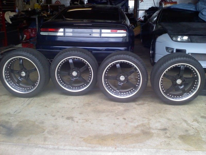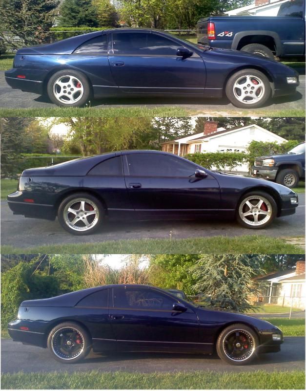 Evolution of different wheels i've had on this Z so far.. I actually was unsure about the gloss black on the blue car.. I was going to disassemble the wheels and paint the centers a gunmetal color but after installing.. I really ended up liking it.. Yes.. coilovers are on my "to-do" list.. need to save up some funds.. then it'll be exhaust.. and TT swap..