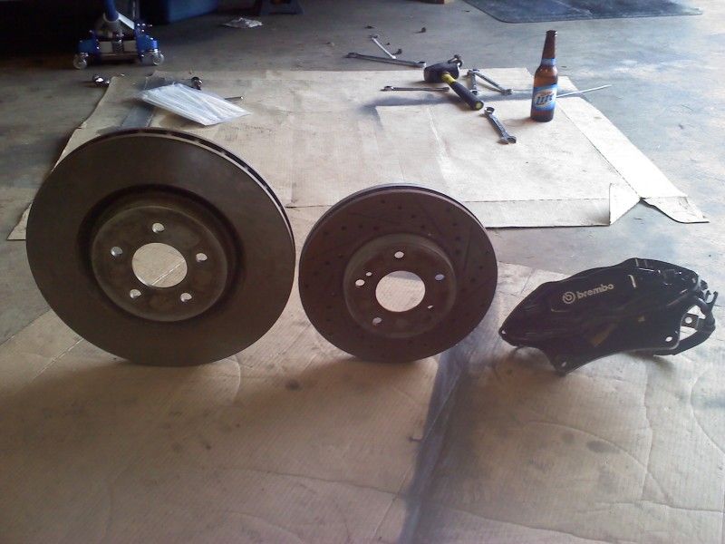 I will be powdercoating or painting the calipers RED.. and either using white, silver or black as the "brembo" logo.. haven't made up my mind yet..