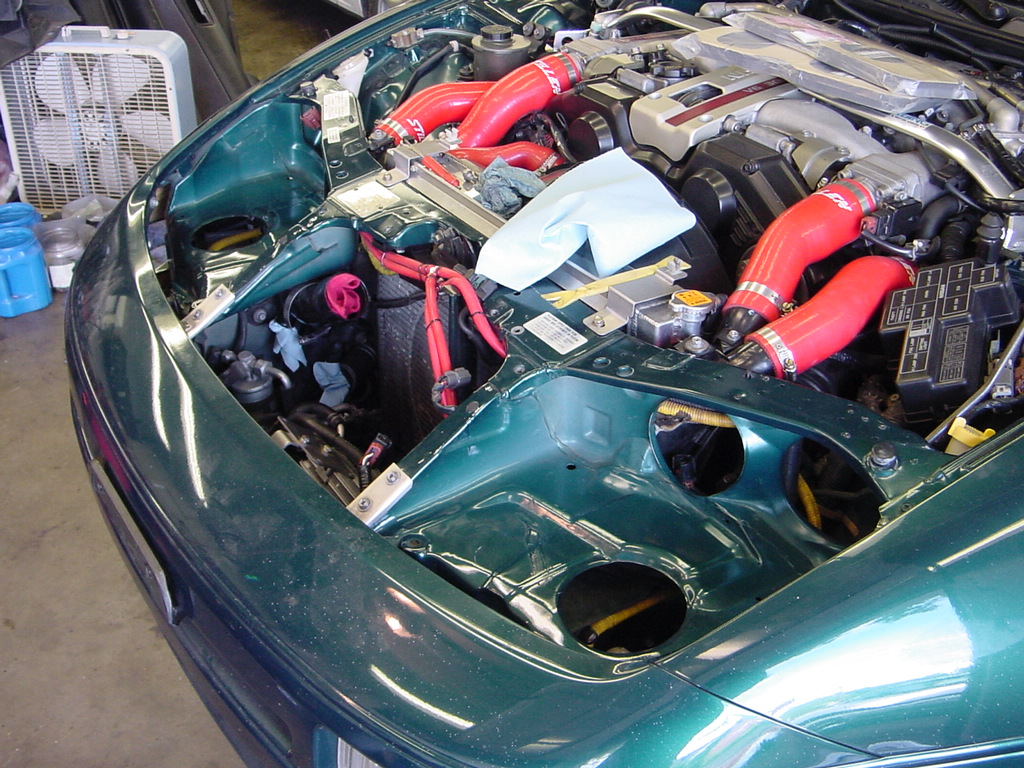 [ http://www.splparts.com/chassis-Z32.html#SPLEL70 ] Next on deck was getting my recircs modified w. the BDE goose honk killer kit and reinstalled. The Goose Honk Killer (GHK) is a kit that will increase the internal spring pressure of both factory recirc valves and this additional spring pressure will only allow the Recircs to open under high vacuum conditions. This is the exact same reason why aftermarket BOVs prevent the Goose Honk and can be vented direct to the atmosphere... because they are not open under idle/low-load conditions, allowing un-metered air to flow into the engine. To get access to them I needed to take out my dual intake, aux fan and unbolted the oil cooler. Details [ http://bde-performance.com/goose.htm ] Here they are ready to go in: