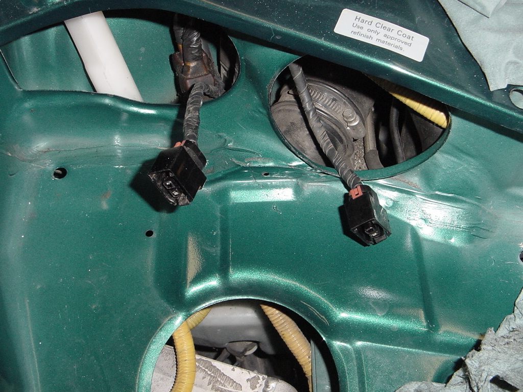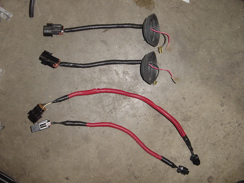 The old weather seal/foam in the buckets was breaking down so I removed it and any glue residue. I had a new set on hand to install when the lights went back in. These lights where originally sold by CZP w. their "plug & play" wiring modification - which is something that I developed for them years ago. However because they are not insulated or weather sealed connectors the adapter connectors had deteriorated and caused the lights to drop out now & then. I wanted to use fully weather sealed connectors this time around - the stock head light connectors can be depined (much like coil pack connectors) and the plastic bits can be replaced. I opted to use a set of the square black connectors like the waste gate solenoids use. Thankfully I had some available clipped from old EFI harnesses - Nissan used to sell these individually but the last time I tired to order them they came back as discontinued.