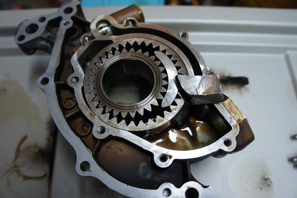 | No real point to this post except if you're like me you enjoy picture post. Pulled my engine this last winter for a bunch of maintenance and a few changes including: -New main and rod bearings. -Complete gasket kit except head gaskets(didn't remove heads). -New valve stem seals. -New oil pump(see pic for why). -Rebuilt lifters. -Replace ams manifolds with swain coated MSP's. -Strip and re-powdercoat ashspec ic pipes silver(they were black). -Install Ashspec planar inlet pipes. -Install adjustable intake and exhaust sprockets and degree cams to factory specs. -Install leader gears. -Install extrude honed upper and lower plenums. -RameyZ idler studs. Couple iphone pics in the bunch...sorry: