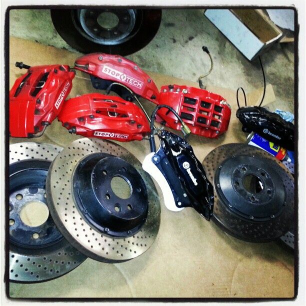 14" Stoptech 6-piston caliper 14" Stoptech 4-piston caliper 14" Shelby GT500 brembos