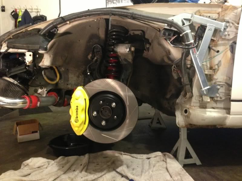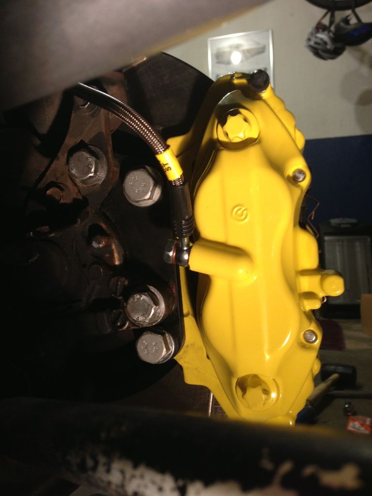 Old set up stock calipers with 350Z track rotors, brackets, and SS lines